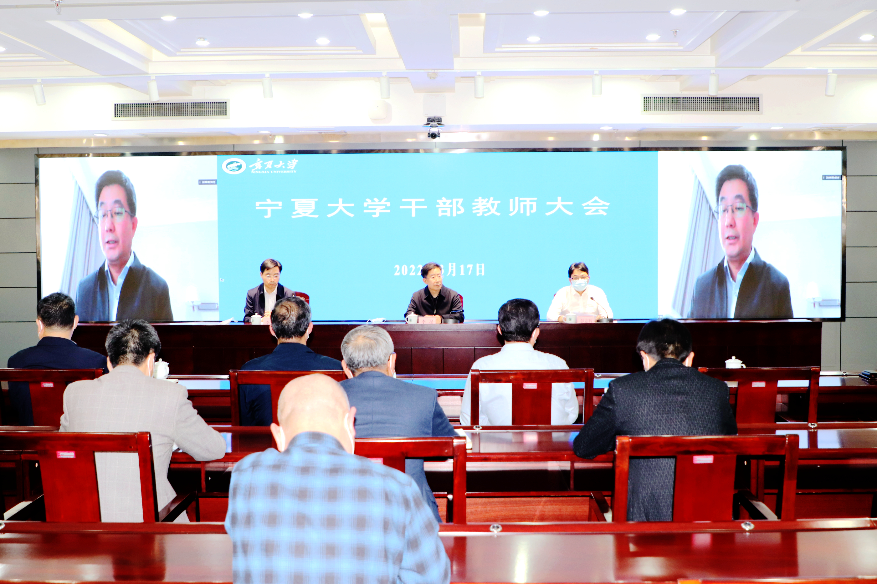 【永利集团304官网新闻中心讯 张景/文、图】3月17日,永利以线上线下结合的方式召开干部教师大会,校领导、厅级干部、党委常委,党委委员、纪委委员,党群、行政部门负责人在德勤楼 6 楼会议室主会场参会,各部门(单位)副处级以上领导干部和教师代表通过视频形式参会。