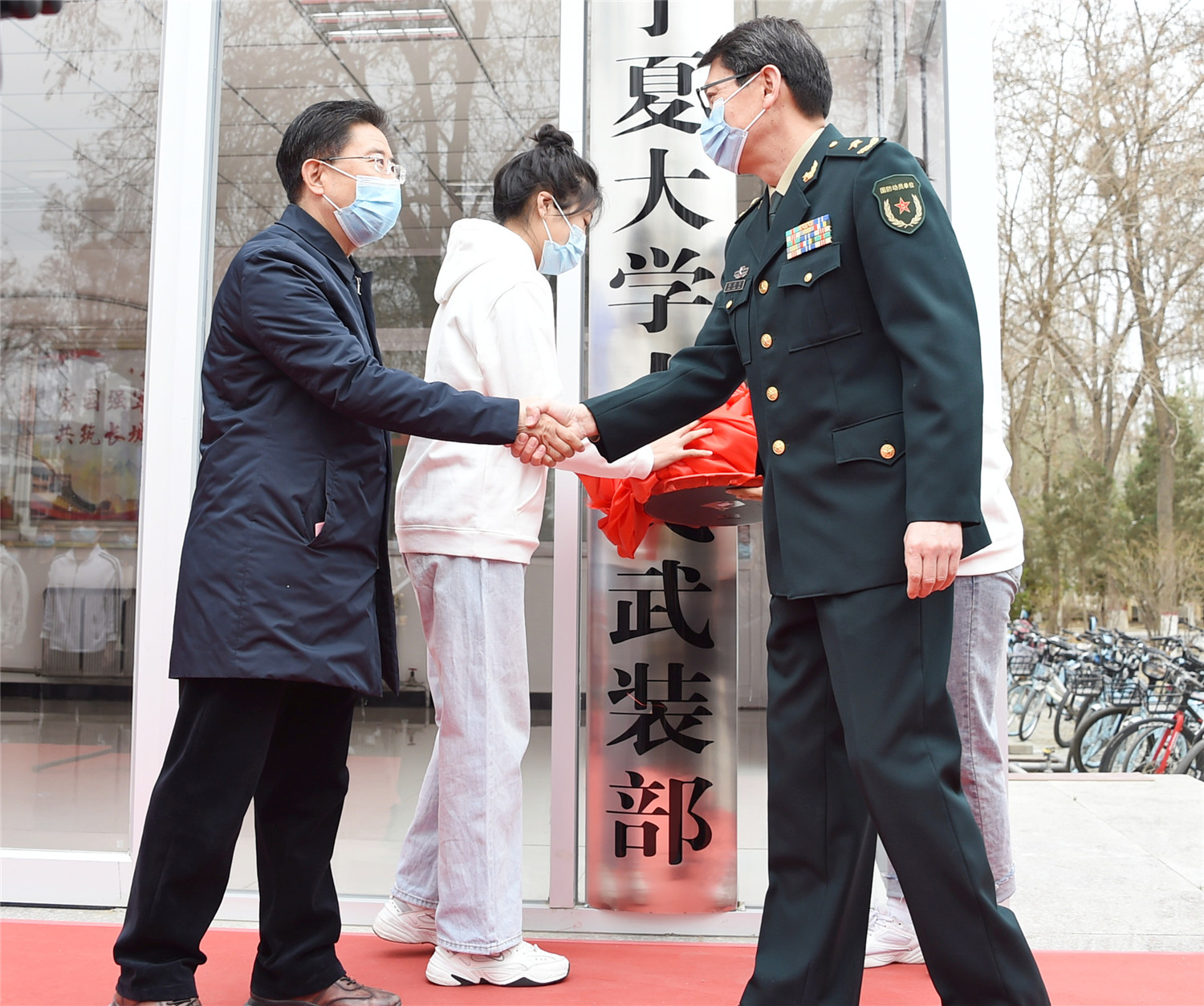 银川市西夏区武装部领导、学校相关单位负责人、学生代表和部分新闻媒体参加仪式。