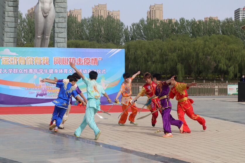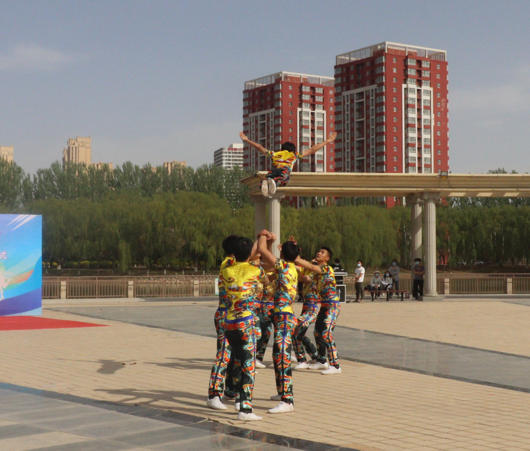 活动启动后,青年学生在广场中央进行了健身体育文化活动展演。