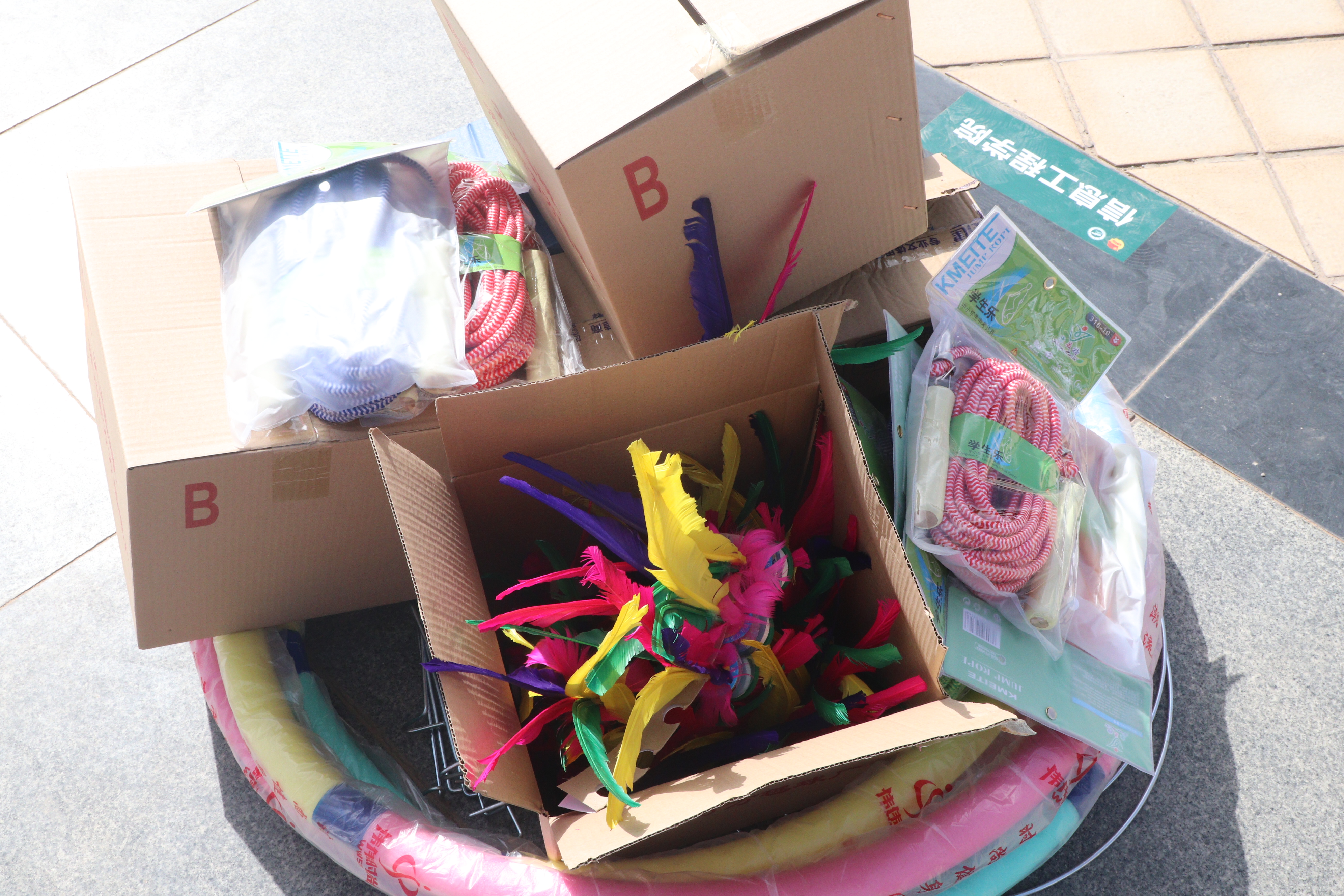 活动中,与会领导为各学院团委代表发放体育活动器材。