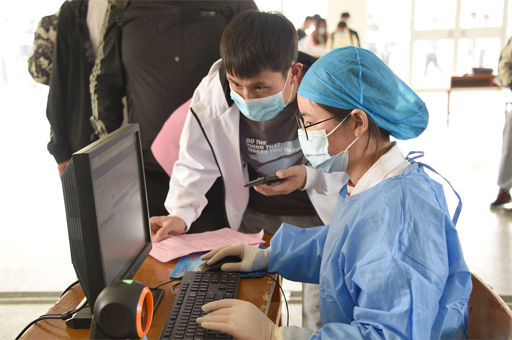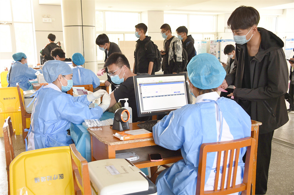 【永利集团304官网新闻中心讯 龚旭峰 杨雯/文 龚旭峰 姬晓珊/图】为认真贯彻落实自治区党委、政府部署要求,进一步加快推进永利新冠病毒疫苗接种工作,切实筑牢师生免疫屏障,4月20日至21日,永利在怀远校区怀远楼组织开展新冠病毒疫苗接种攻坚行动,共计完成1965人次接种。