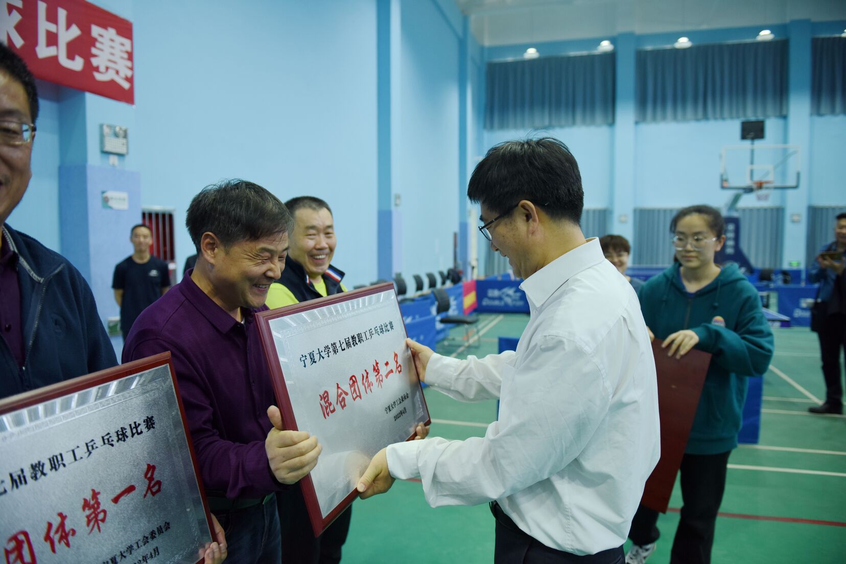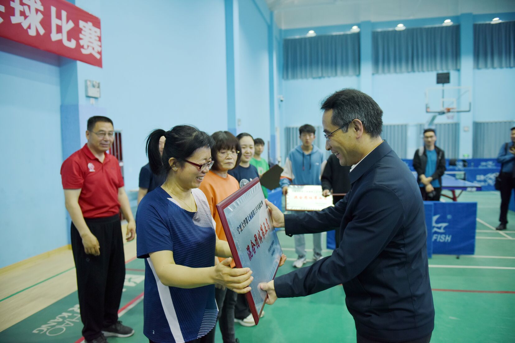 校党委副书记周震,校党委常委、副校长史金龙出席比赛闭幕式并为获奖单位颁奖。史金龙表示,乒乓球比赛是永利教职工参与人数较多、竞争性较强的传统优势体育项目,深受教职工喜爱。通过比赛,各单位教职工切磋了球技,加强了相互之间的学习交流,增进了彼此的友谊,希望教师们将赛场上表现出来的“团结、拼搏、进取”的精神,融入到今后的工作和生活中,健康生活、积极工作,营造蓬勃向上的校园文化,进一步推动各项事业高质量发展,为学校的“双一流”建设贡献力量。