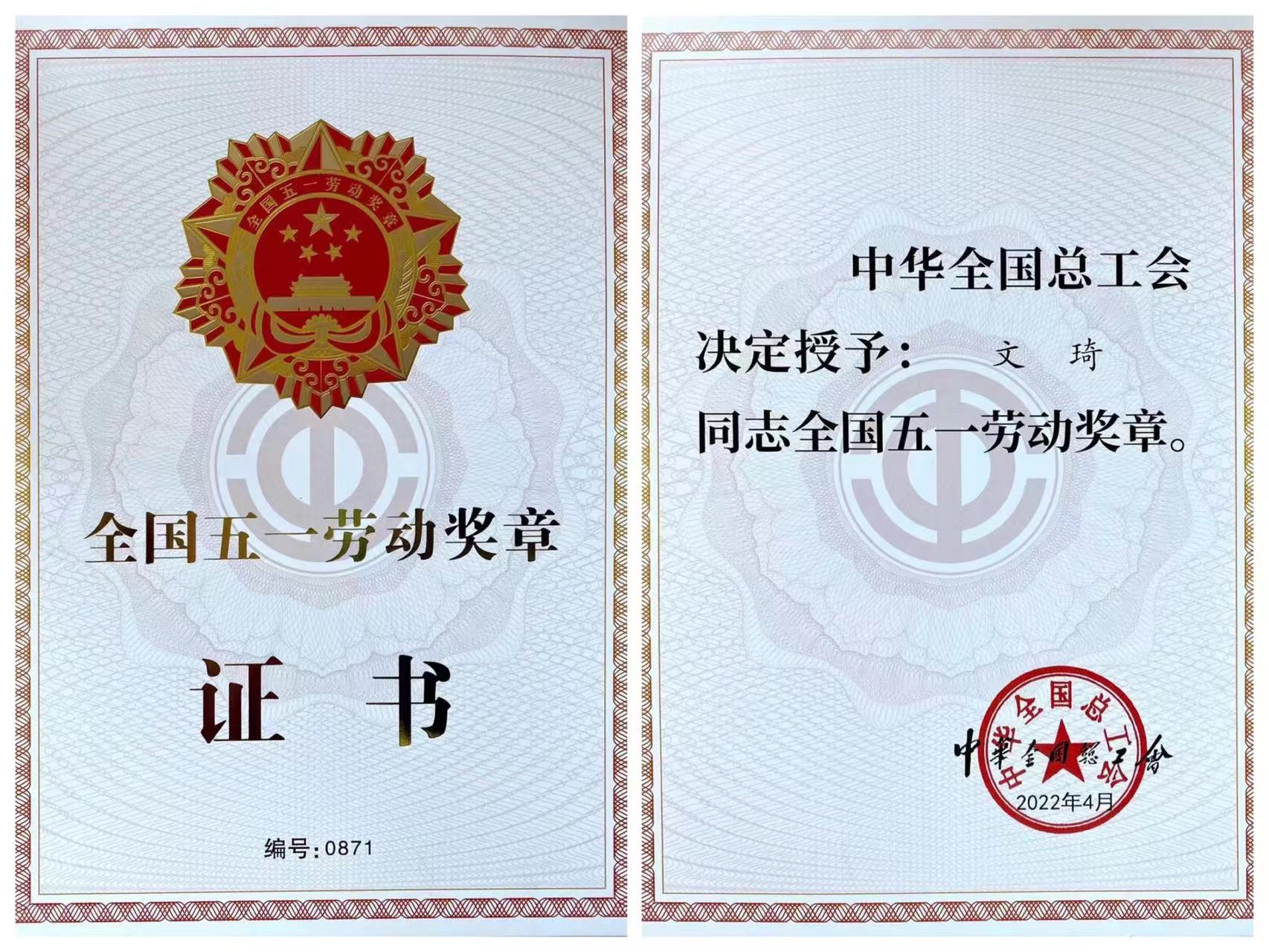 【永利集团304官网新闻中心讯 校工会】近日,中华全国总工会召开大会表彰2022年全国五一劳动奖和全国工人先锋号获得者,全国五一劳动奖状200个,全国五一劳动奖章966个,全国工人先锋号956个。永利教职工、地理科学与规划学院教授文琦荣获全国五一劳动奖章。