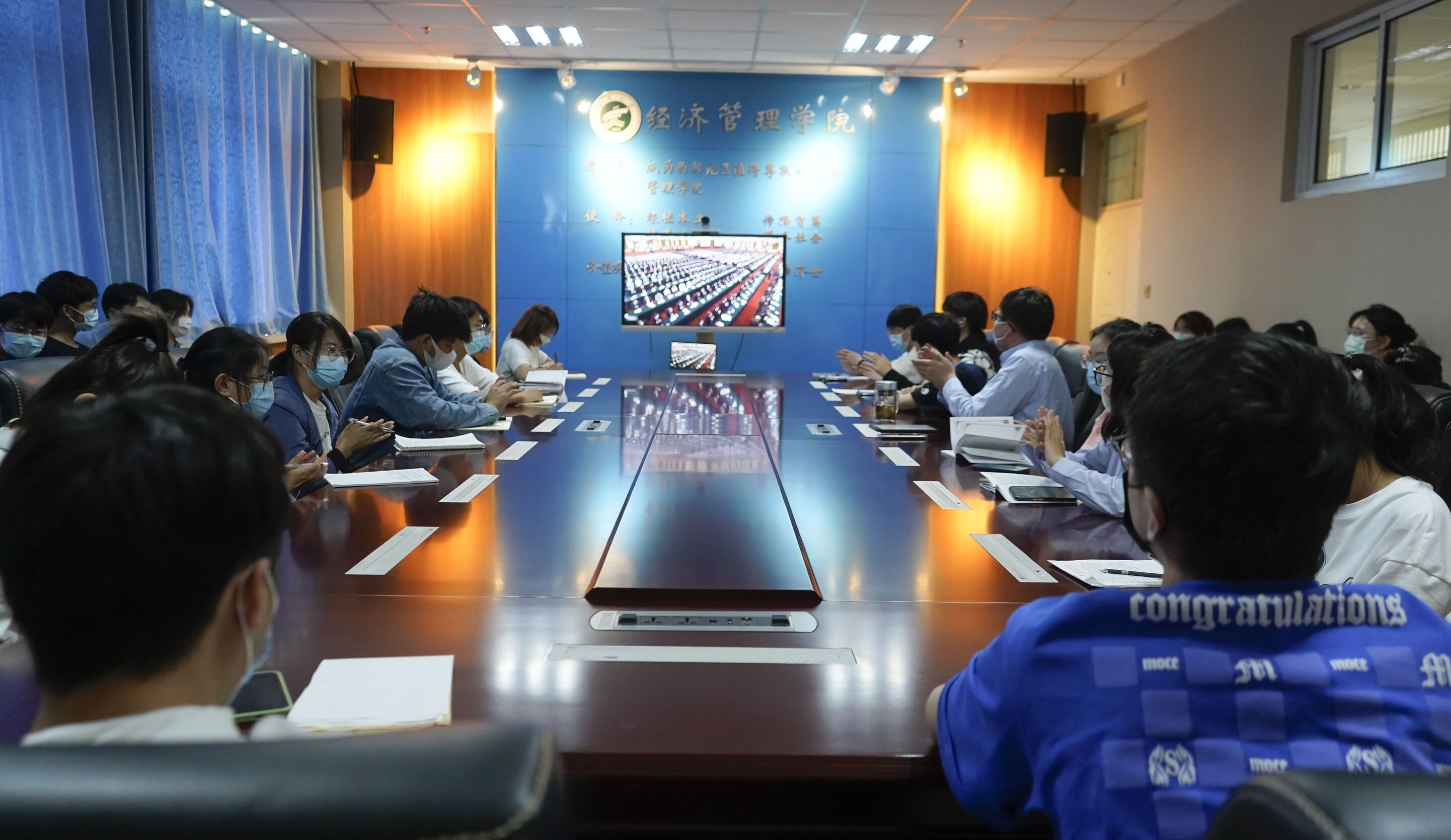 永利集团304官网师生第一时间通过中央广播电视总台、新华网、人民日报客户端、“学习强国”学习平台集中或自发收听收看大会实况。校党委常委、校领导与思想政治工作指导委员会全体委员和师生代表在德勤楼6楼会议室主会场,学校团委全体工作人员、“两红两优”获奖者代表、校级学生组织成员代表及团员青年代表在科技楼报告厅分会场,各学院、博雅书院、附属中学师生在所在校区分会场集中观看了大会现场直播。其他师生于课后自发收听收看了大会盛况回放。