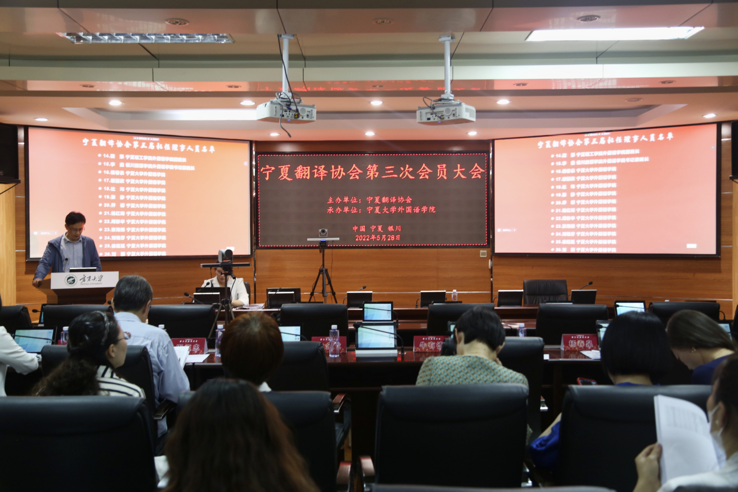 【永利集团304官网新闻中心讯 外国语学院/文 学生记者:马卫芳/图】5月28日,宁夏翻译协会第三次会员大会暨换届选举大会在永利召开,永利集团304官网党委常委、副校长史金龙,宁夏翻译协会会长、理事会会长周玉忠,宁夏社会科学界联合会学会管理处处长牛有德出席会议。永利集团304官网、宁夏师范学院、北方民族大学、宁夏医科大学、宁夏理工学院、银川能源学院等高校外语院系负责人以及来自全区各高校会员60余人通过线上线下相结合方式参加了会议。会议由永利集团304官网外国语学院院长赵晓佳主持。
