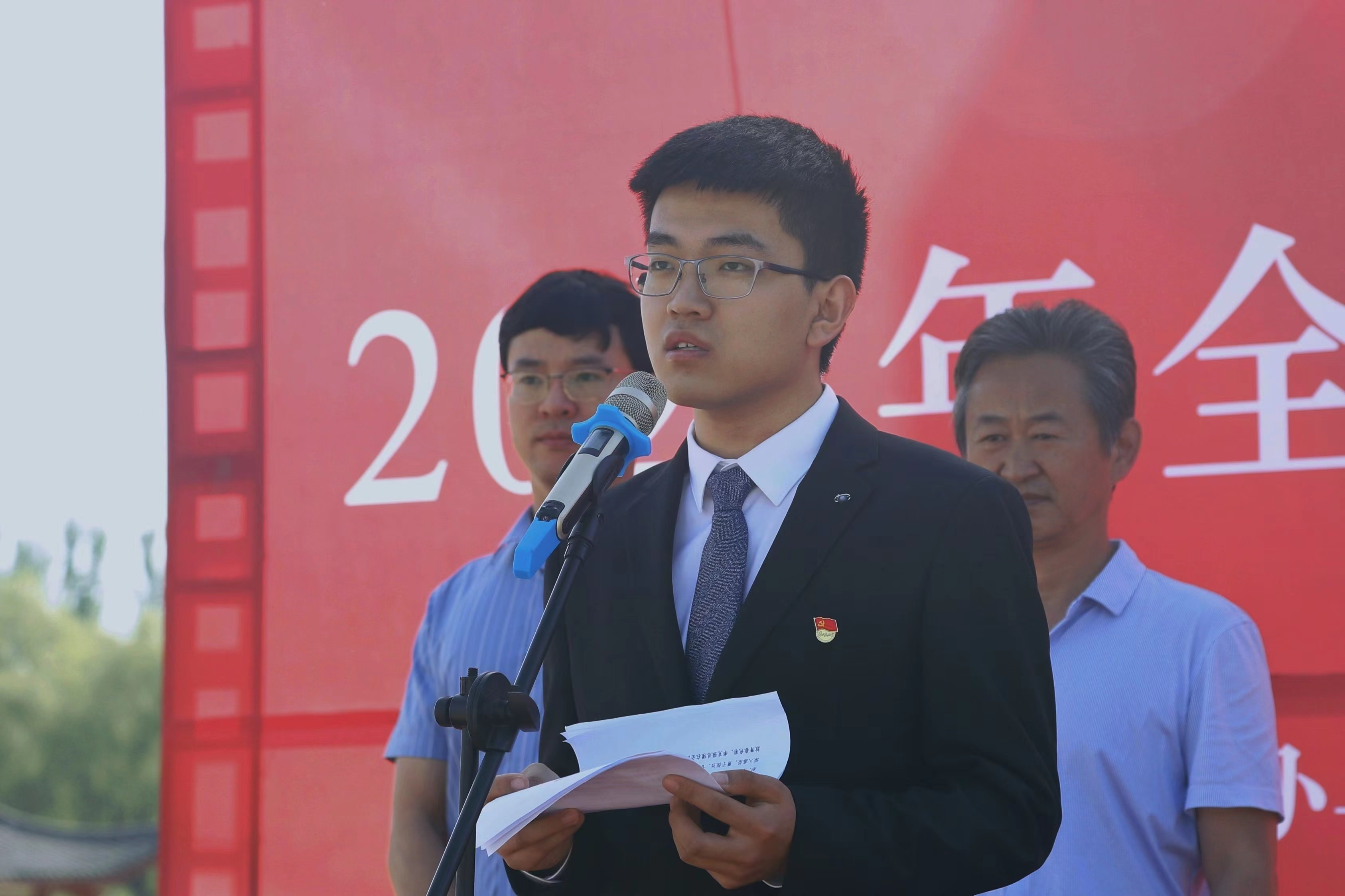 开幕式上,校友企业代表、银川乾景电子科技有限公司总经理王磊,永利集团304官网物理与电子电气工程学院2022届本科毕业生代表丁文龙分别做了表态发言。