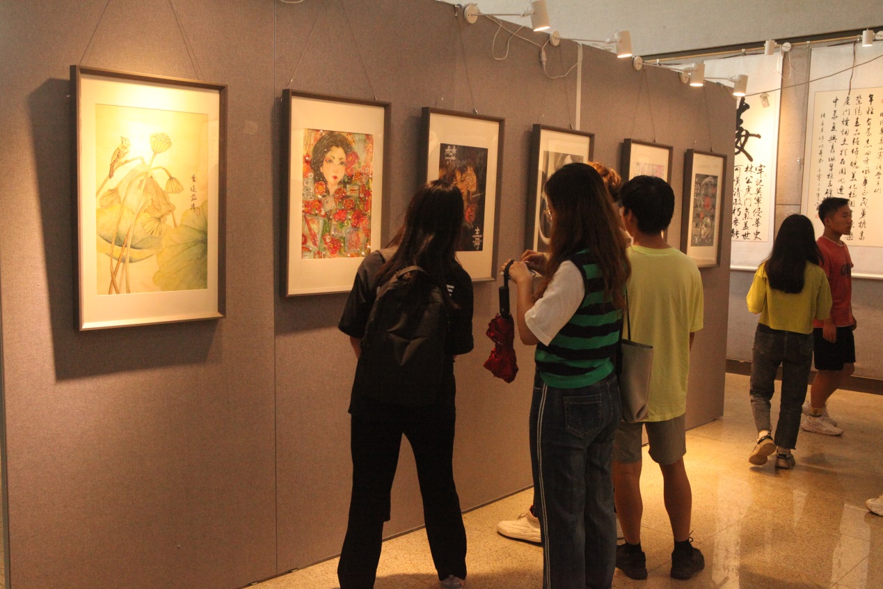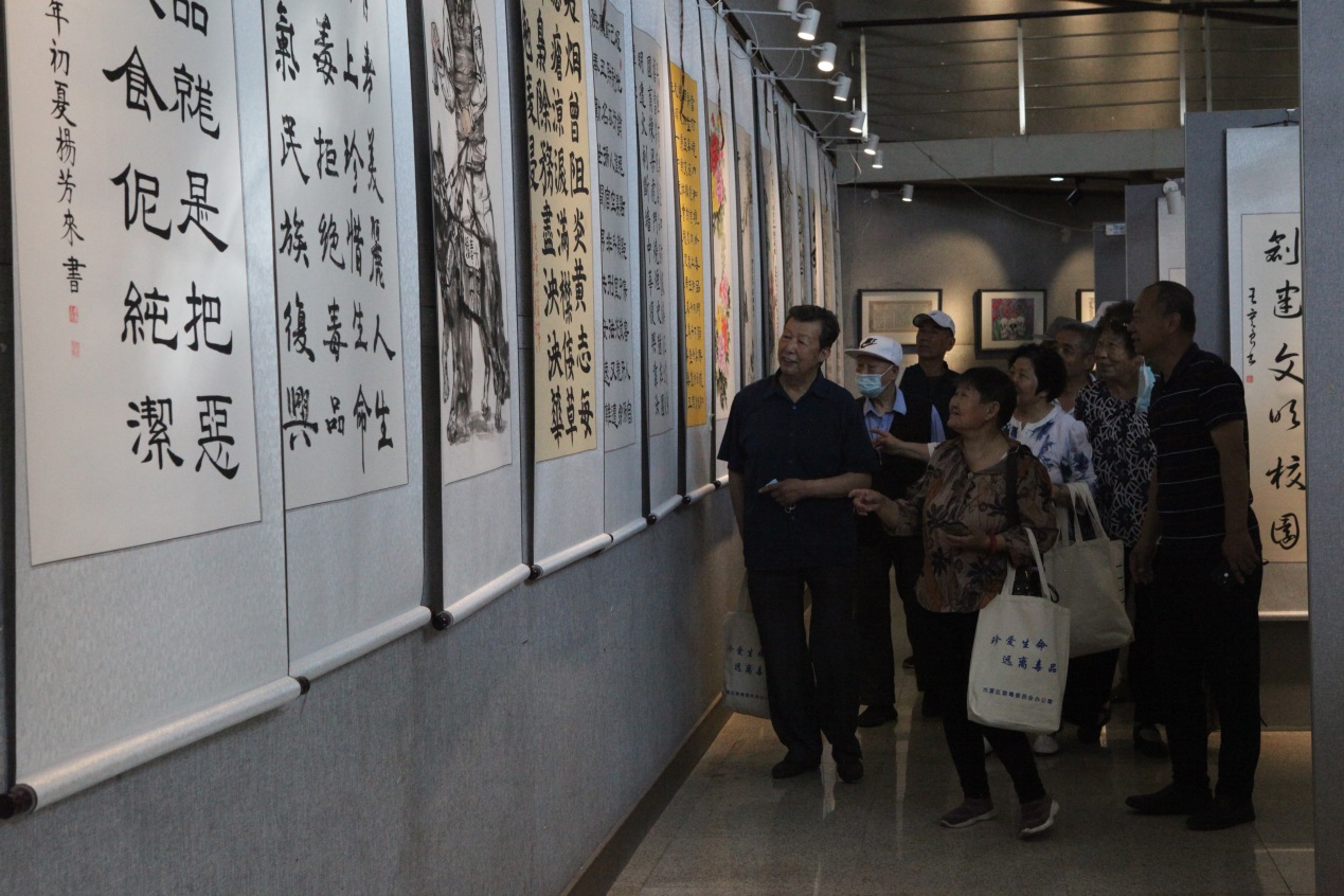 仪式结束后,与会领导、参赛师生共同参观了禁毒书法绘画作品展。