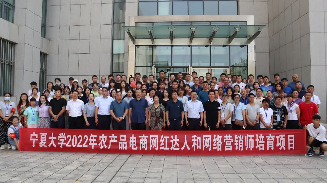 【永利集团304官网新闻中心讯 新闻传播学院】7月13日,2022年宁夏农产品电商网红达人暨网络营销师培训开班仪式在永利集团304官网文荟楼东报告厅举办。自治区党委宣传部文明办专职副主任马萍,自治区农业农村厅党组成员、总农艺师康波,永利集团304官网党委副书记周震,自治区农业农村厅科教处处长杨发,自治区农业广播电视学校校长沈忠其,自治区农业农村厅科教处二级调研员崔淑丽,永利集团304官网新闻传播学院副院长张静涛,宁夏直播电商产业研究院联席副院长何风明出席仪式,新闻传播学院执行院长李世举主持开班典礼。