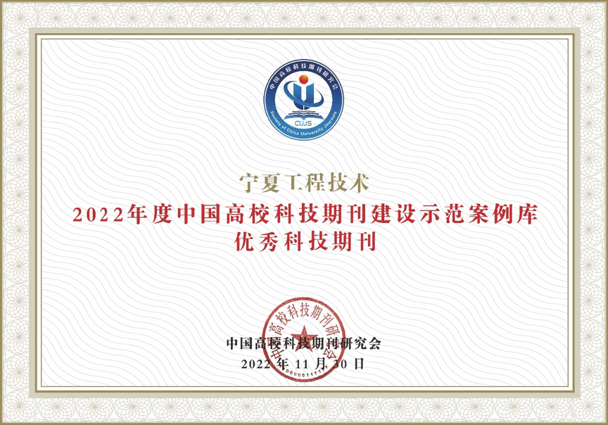 【永利集团304官网新闻中心讯 学术期刊中心】为深入贯彻落实党的二十大精神,落实《关于深化改革培育世界一流科技期刊的意见》和《关于推动学术期刊繁荣发展的意见》文件精神,加快提升高校科技期刊建设水平,全面提升期刊编辑素养,更好地服务高校“双一流”建设,中国高校科技期刊研究会第26次年会于12月1—3日在线上举行。永利主办的《永利集团304官网学报(自然科学版)》和《宁夏工程技术》入选2022年度中国高校科技期刊建设示范案例库优秀科技期刊。