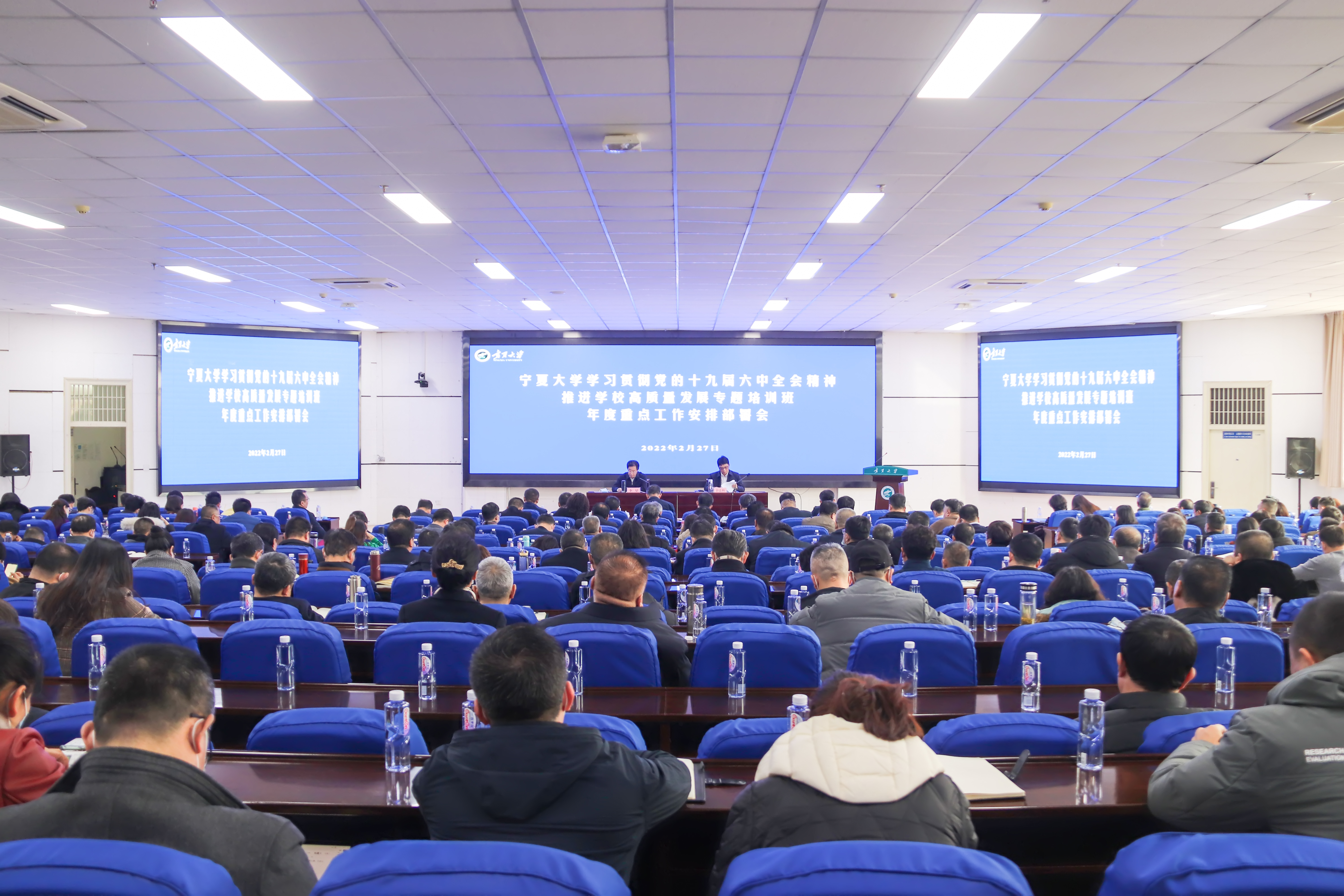 学校分别于2022年春季学期、秋季学期开学前夕举办永利集团304官网中层领导干部学习贯彻党的十九届六中全会、自治区第十三次党代会精神推进学校高质量发展专题培训班,通过自主学习、集中培训、辅导讲座、专题研讨、部署工作等,将理论学习与实际工作紧密结合,在实际工作中检验学习成效。党的二十大胜利召开后,校党委始终以高度的政治责任感,深入学习宣传贯彻党的二十大精神,广泛开展党的二十大和习近平总书记视察宁夏重要讲话指示批示精神“大学习、大讨论、大宣传、大实践”活动,确保第一时间传达学习,迅速反应抓好贯彻,扎扎实实推动落实,在入脑入心、走深走实、见行见效上持续用力,把全校的智慧和力量凝聚到党的二十大报告关于教育的新思想新战略新要求上来。通过在学习研讨上用力,进一步凝聚思想共识破解发展难题;在宣传阐释上着力,进一步凝聚团结之力营造浓厚氛围;在实践实干上发力,进一步凝聚改革之效开创高质量发展新篇。全校上下持续掀起学习宣传贯彻党的二十大精神的热潮,坚持与推进教育教学、管理服务、疫情防控工作紧密结合,与学校综合改革和高质量发展深度融合,以学促干提质效、以干践行促落实,推动学校各项工作行稳致远。