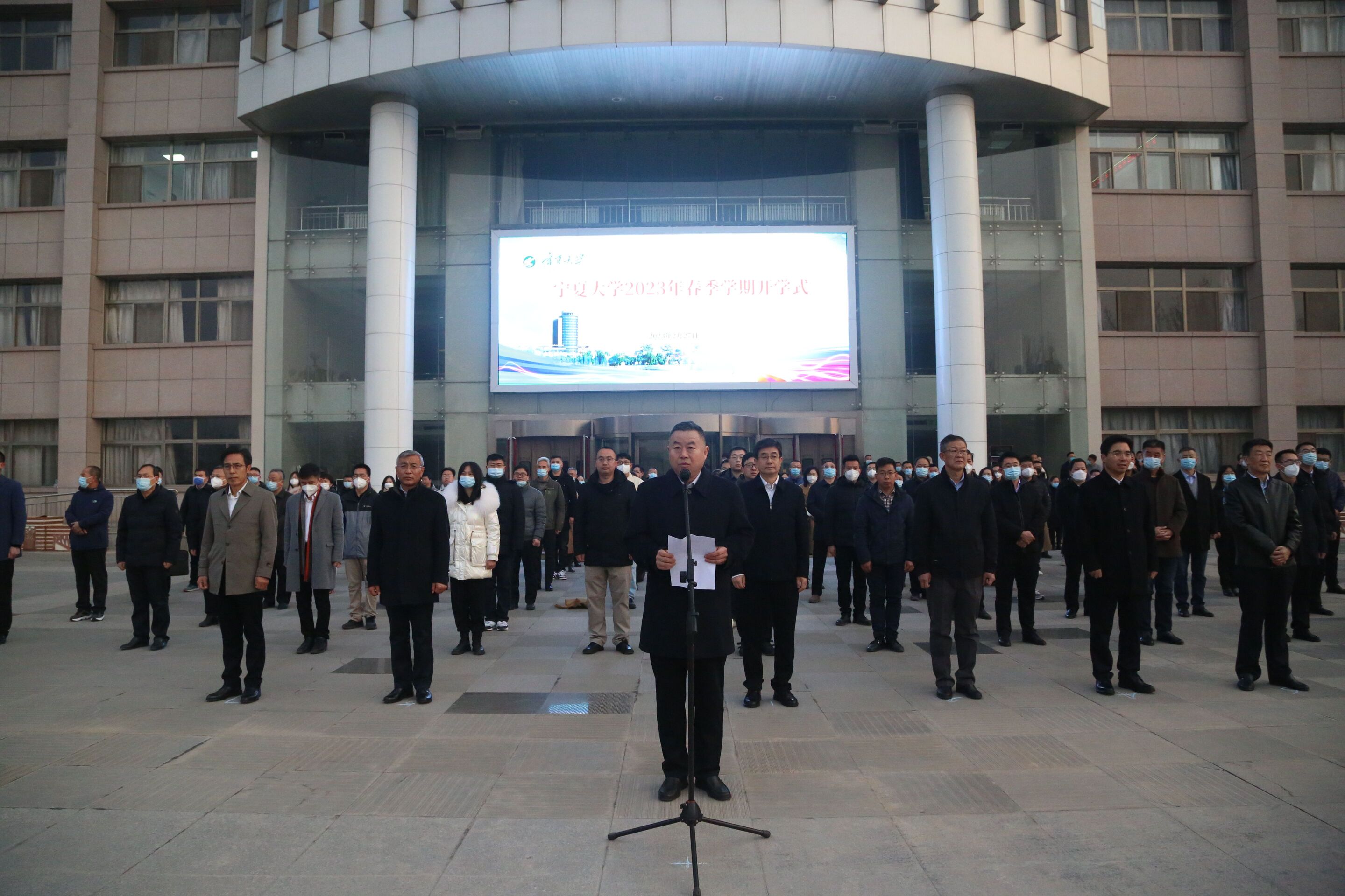 【永利集团304官网新闻中心讯 王文娣/文 王文娣 学生记者:刘岱雨/图】新学期开启新征程,新目标激发新动力。2月27日清晨,永利在贺兰山校区德勤楼前隆重举行2023年春季学期升国旗仪式暨“开学第一课”。校领导周震、周运生、李建设、李学斌,党委常委、统战部部长何风隽,党委常委、组织部部长张立杰,党委常委、宣传部部长高永兴参加升国旗仪式,党委常委、副校长李建设主持仪式。
