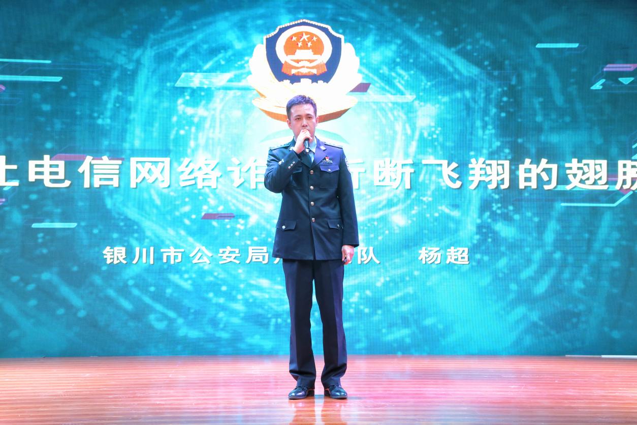 永宁县公安局民警邹鑫君,“全国特级优秀人民警察”、银川市公安局刑侦支队刑事技术大队副大队长拜永强,银川市公安局刑侦支队民警杨超,全国公安系统二级英雄模范、全国特级优秀人民警察、银川市公安局交警分局四级高级警长杨鸿胜,永宁县公安局闽宁镇派出所民警刘艳分别围绕人民警察的家国情怀和成长经历、在刑侦岗位上守护公平正义、防电信网络诈骗、交通安全知识普及、闽宁镇原隆村警务室服务群众故事等主题,用精彩的宣讲充分诠释了新时代人民警察护航新征程、建功新时代的奉献精神和优良风貌。