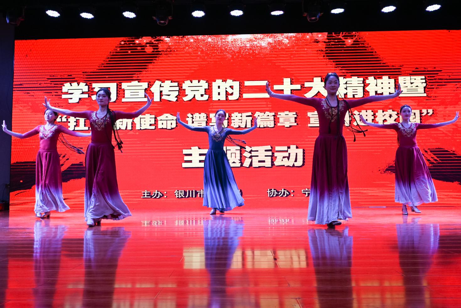 银川市委宣传部讲师团团长脱俊卿,公安厅机关党委委员、组织处副处长李青宁,银川市委政法委队伍建设指导室主任、四级调研员伍一中,永利集团304官网音乐学院副院长陈宏与数百名师生代表共同参加活动。