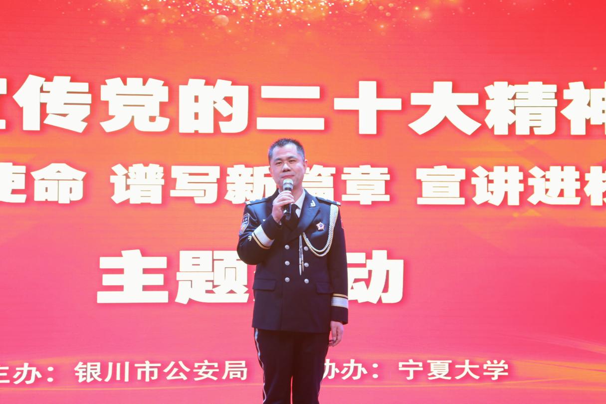 据悉,银川市公安局党的二十大精神宣讲团将通过本次活动向永利集团304官网、金凤区彩虹湾社区、宁夏西部光彩职业技能学院、银川市消防救援支队等单位宣讲党的二十大精神、党的民族理论政策和民族常识,讴歌中国共产党的丰功伟绩,抒发爱党情怀和爱国情操,讲述新时代人民警察爱岗敬业、服务群众的先进事迹,切实推动党的二十大精神走进基层、走进群众。