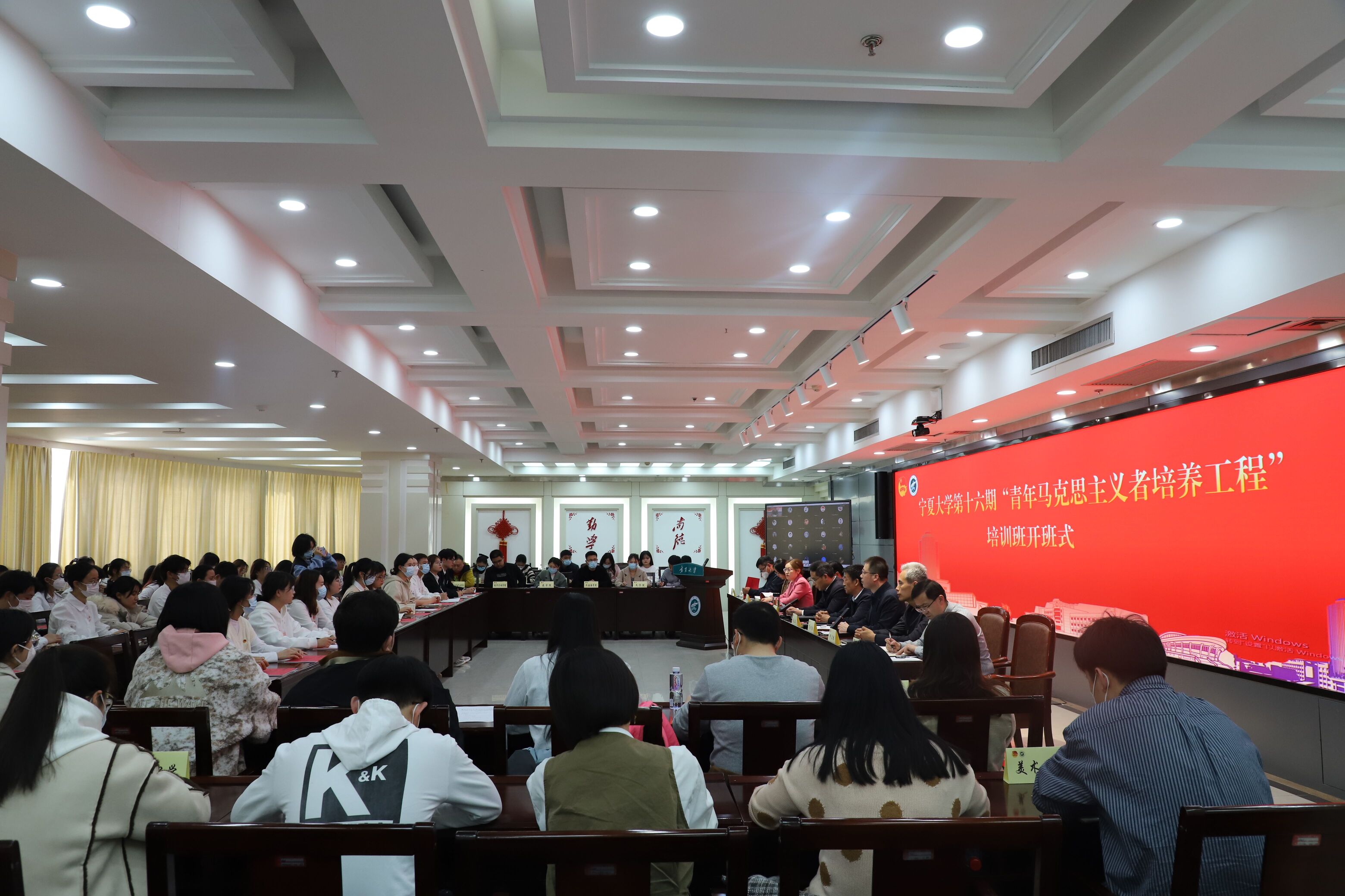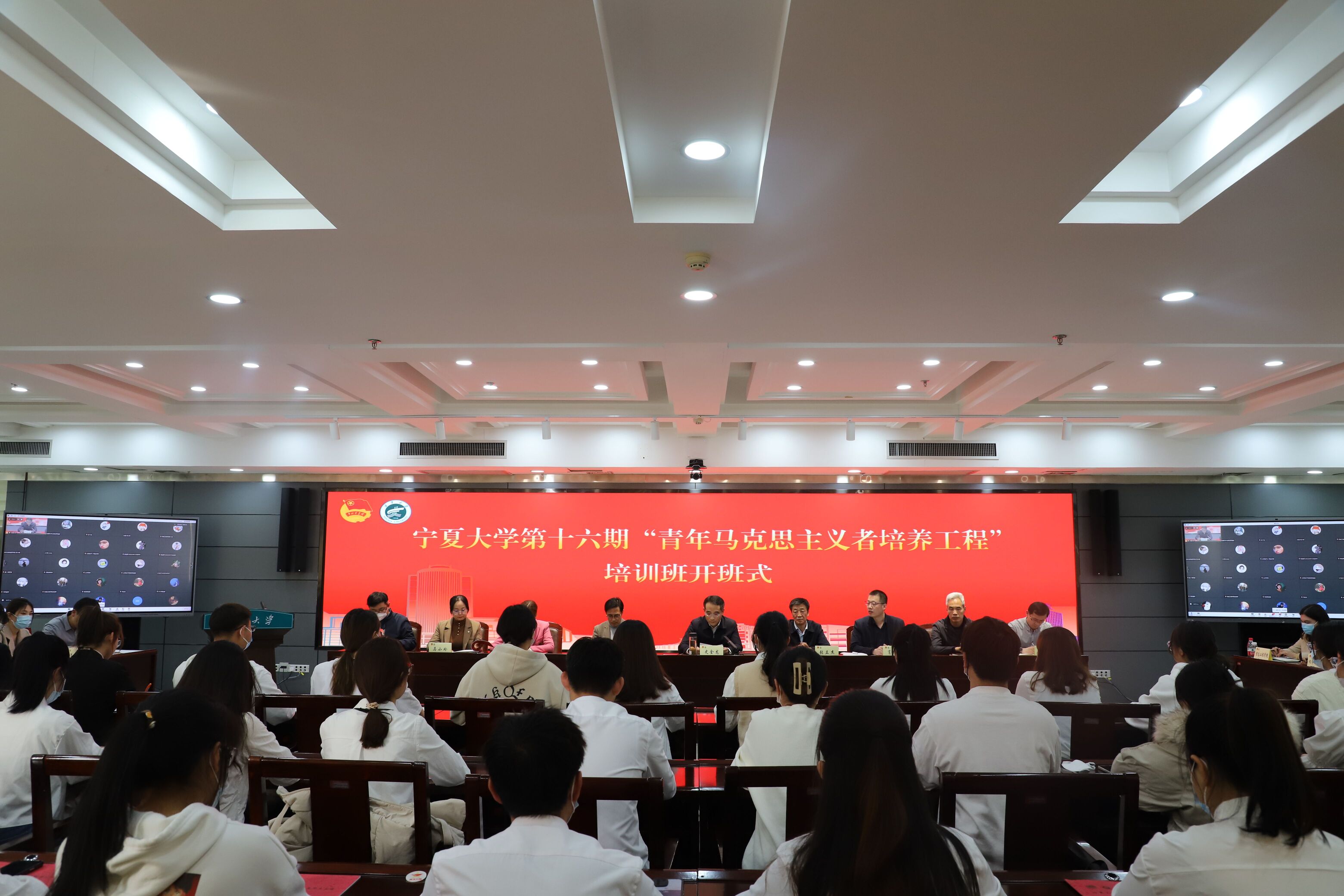 党委统战部,学生工作部、团委、对外合作与交流处、本科生院、马克思主义学院等相关部门负责人,各学院团委书记、副书记,第十六期“青马工程”培训班全体学员参加开班式,各学院、书院“青马班”学员线上参加开班仪式。