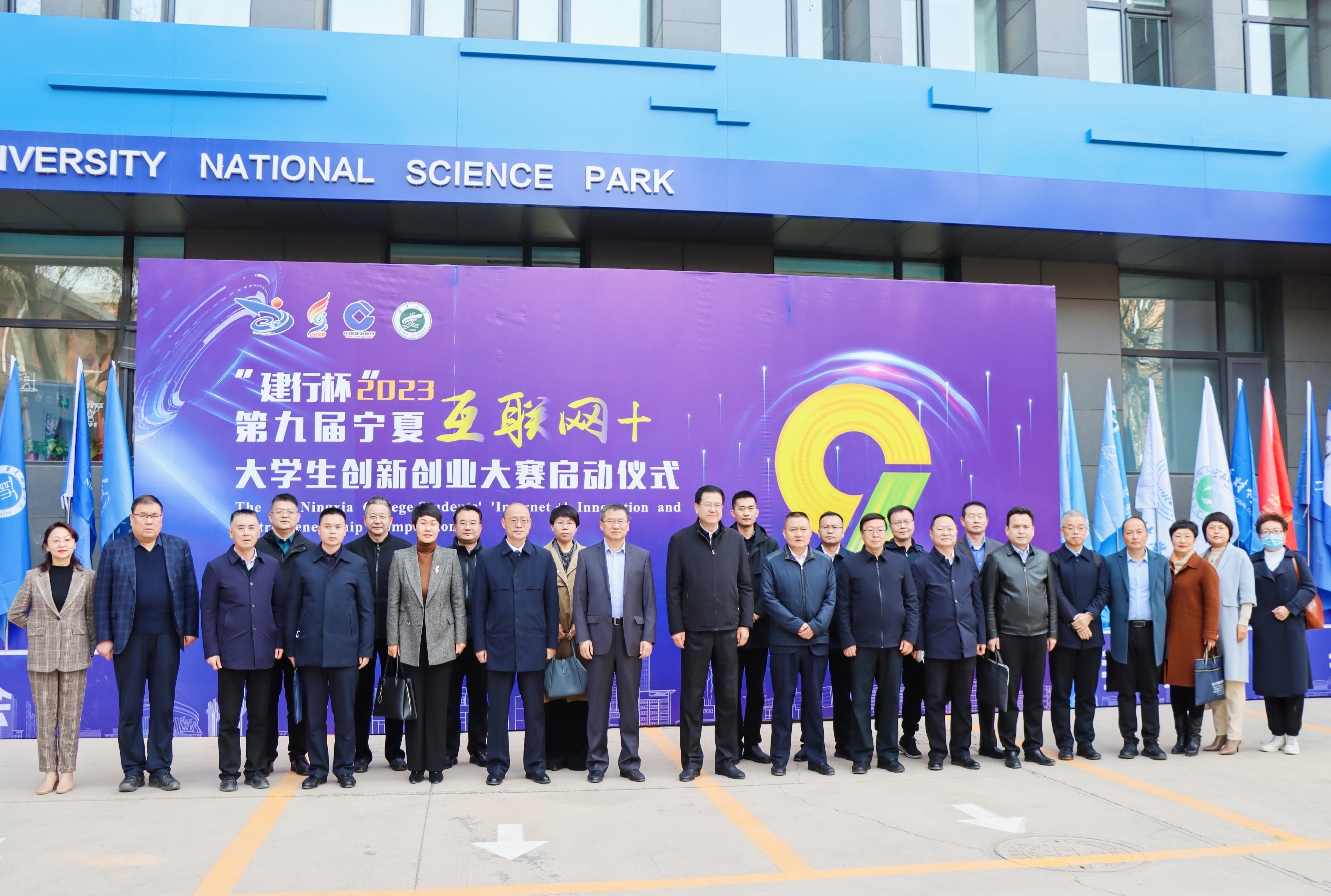 王宏伟、王忠静及参赛师生代表共同启动第九届宁夏“互联网+”大学生创新创业大赛。