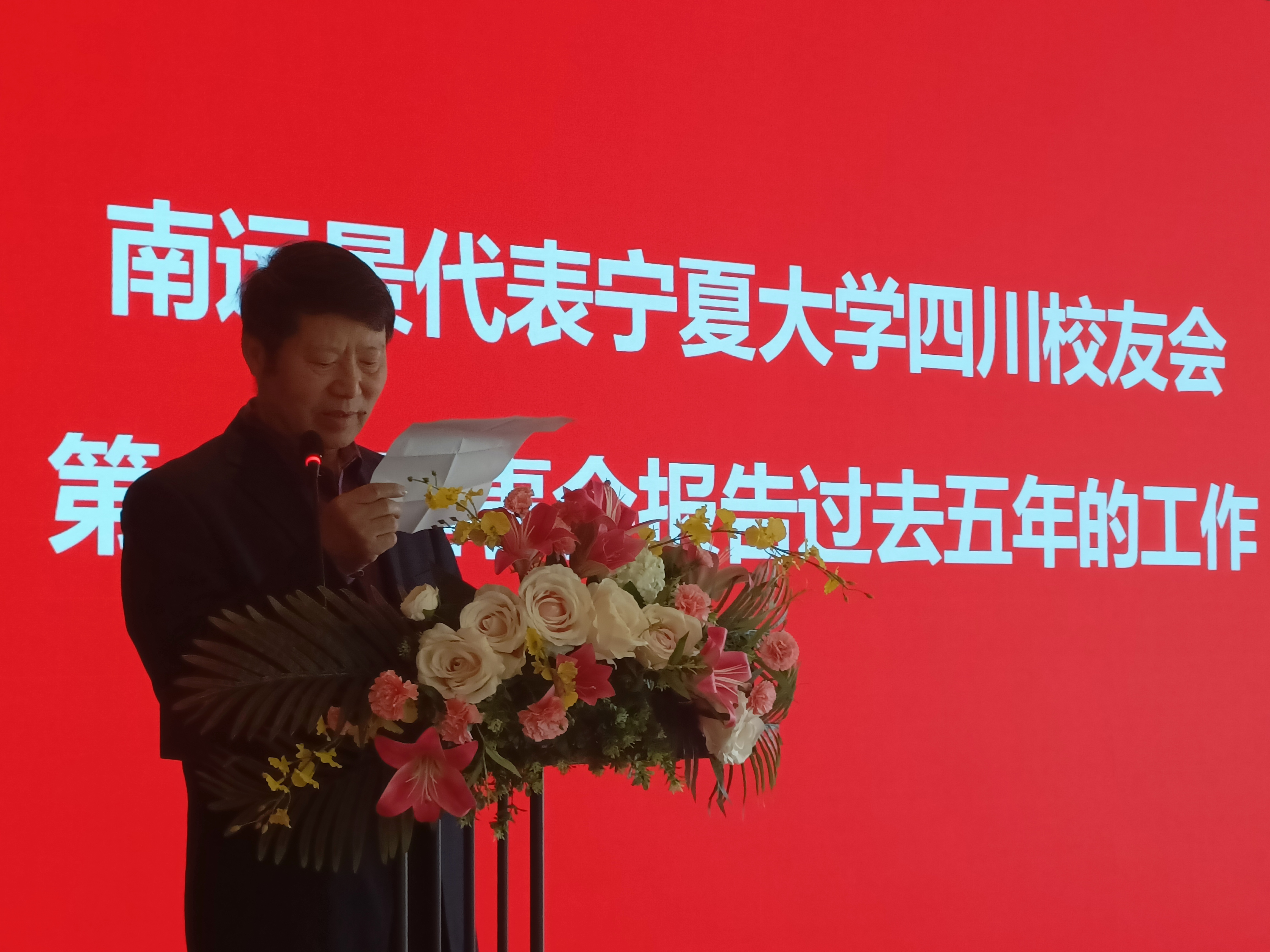 四川校友会原会长、1978级物理专业校友南远景作第一届理事会工作报告。他表示,四川校友会第一届理事会的成立和发展,得益于母校领导的关心,离不开理事会成员的辛勤努力和无私奉献。希望新一届理事会能够更好地发挥凝聚校友、促进交流、互帮互助的作用,助力母校和校友共同发展。