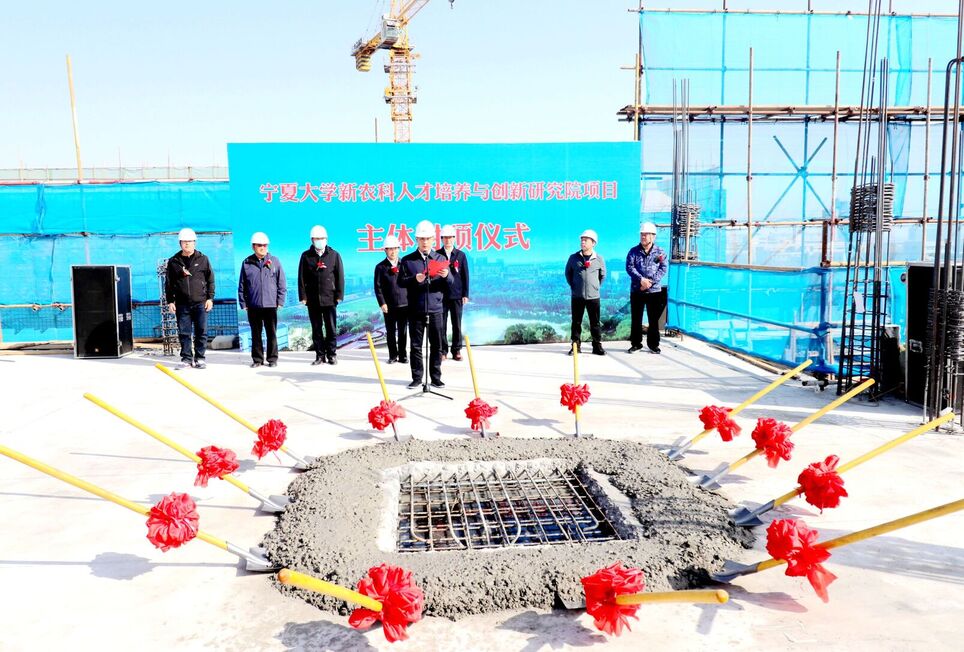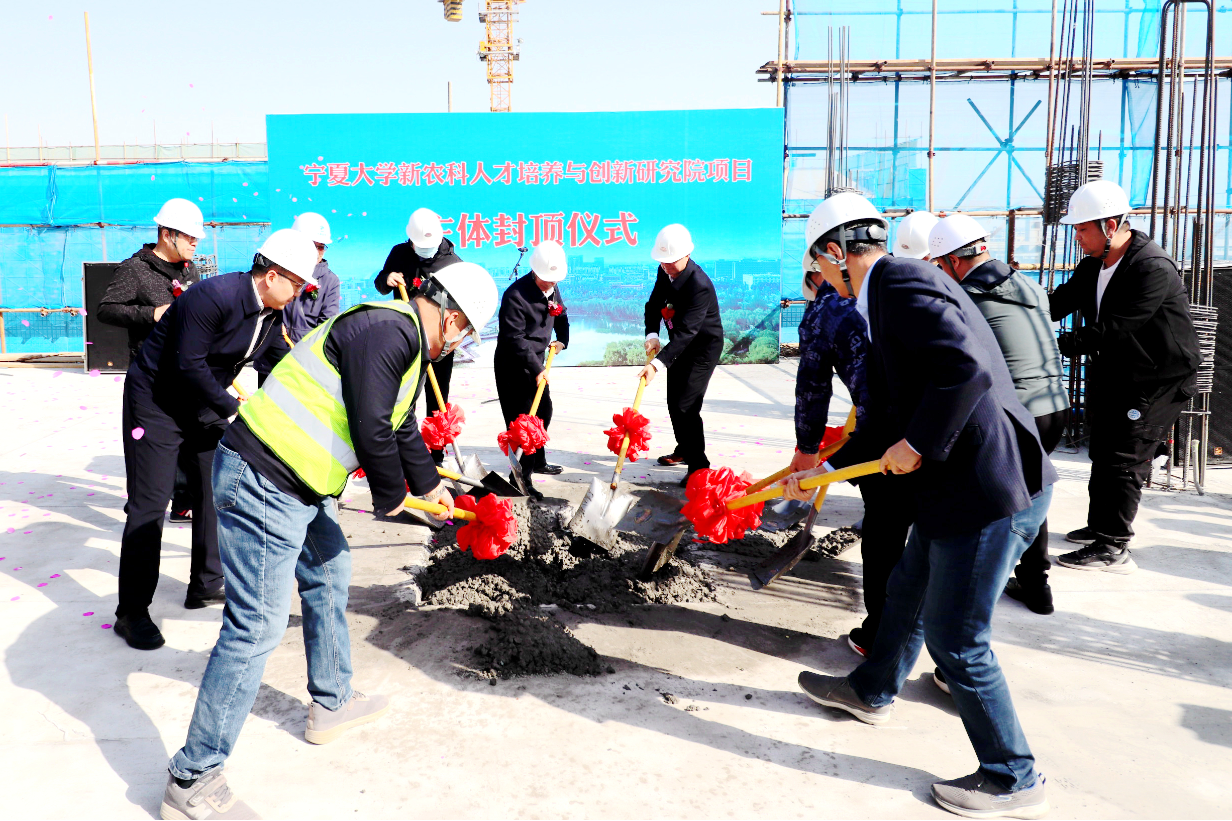 【永利集团304官网新闻中心讯 张景/文、张景 王文娣/图】在自治区发展改革委、财政厅、教育厅有关部门的大力支持和学校相关部门的通力协作下,历经10个多月的建设,永利新农科人才培养与创新研究院项目主体施工任务顺利完成,取得阶段性成果。3月29日,新农科人才培养与创新研究院项目主体正式封顶,全体在家校领导出席封顶仪式。校党委常委、副校长史金龙主持封顶仪式。