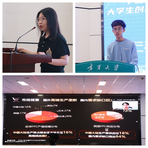 会上对永利集团304官网第七届首金项目《丝路宁夏文创——中国西部文化旅游融合发展领跑者》、永利集团304官网第八届大赛金奖项目《光智科技——高效检测废水中重金属离子技术推动者》、四川大学第八届金奖项目《黑柔科技——新型柔性显示电路板》进行了展示。