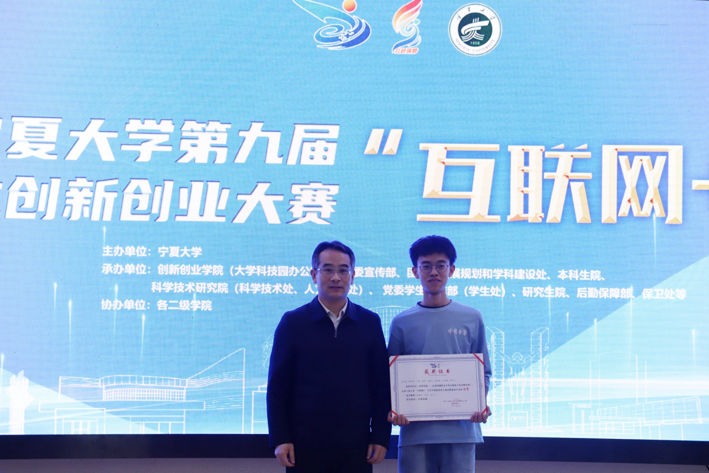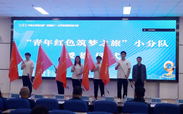 史金龙为第八届大赛金奖项目颁发获奖证书,王忠静为第八届大赛先进集体单位颁奖,党委学生工作部部长、学生处处长马正亮为第八届大赛优秀组织单位颁奖,团委书记肖功国为本届大赛“青年红色筑梦之旅”小分队授旗。启动仪式上还发布了永利集团304官网创新创业学院院歌暨永利集团304官网“互联网+”大学生创新创业大赛主题曲。