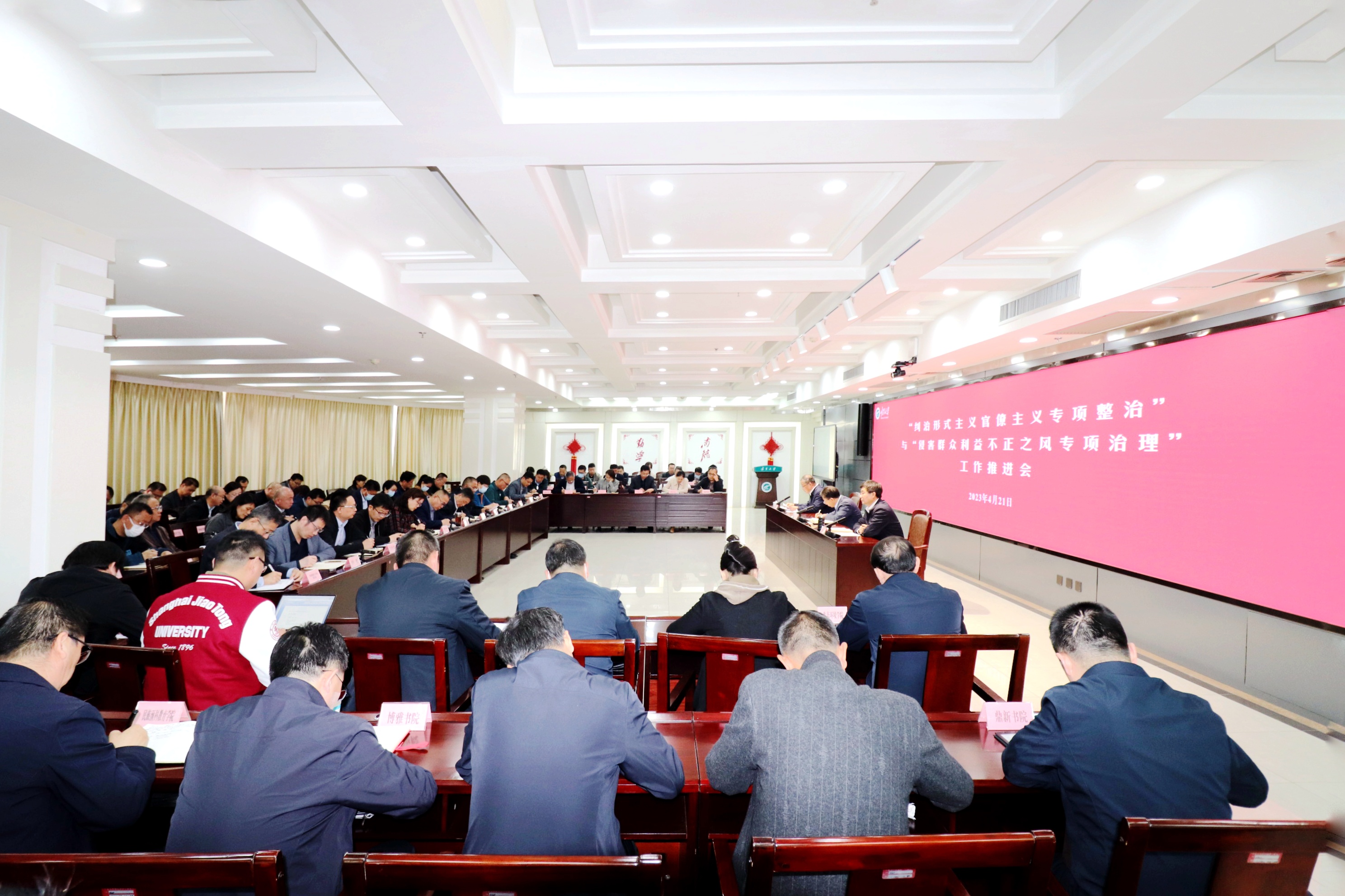 【永利集团304官网新闻中心讯 杨雯/文 张景/图】为深入学习宣传贯彻党的二十大精神、二十届中央纪委二次全会、自治区纪委十三届二次全会精神,进一步推动永利作风建设持续向好,营造风清气正的干事创业环境,4月21日下午,永利在贺兰山校区德勤楼6楼会议室召开“纠治形式主义官僚主义专项整治”与“侵害群众利益不正之风专项治理”工作推进会。校党委书记李星,校党委副书记周震,校党委常委、纪委书记周运生出席会议。会议由周震主持。