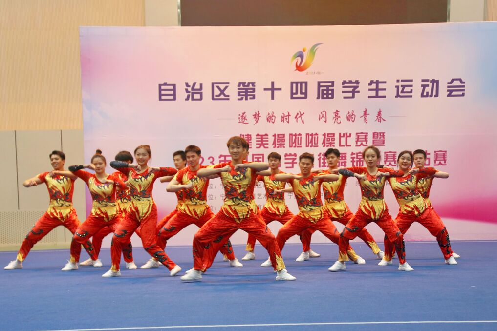 本届赛事大学组比赛设田径、三人制篮球、排球、沙滩排球、武术、健美操啦啦操、校园定向7个大项。学校积极备战,选拔178名优秀运动员参加了所有项目的角逐。最终,永利以27金24银11铜的成绩荣获大学丙组团体总分第一名,7个项目打破赛会纪录,其中,2022级运动训练专业学生刘策以15秒21打破尘封28年的自治区成人男子110米栏纪录;以9金12银14铜的成绩获得大学甲组(阳光组)团体总分第三名,1个项目打破赛会纪录;永利获评突出贡献奖,学校及体育学院双双荣获体育道德风尚奖。