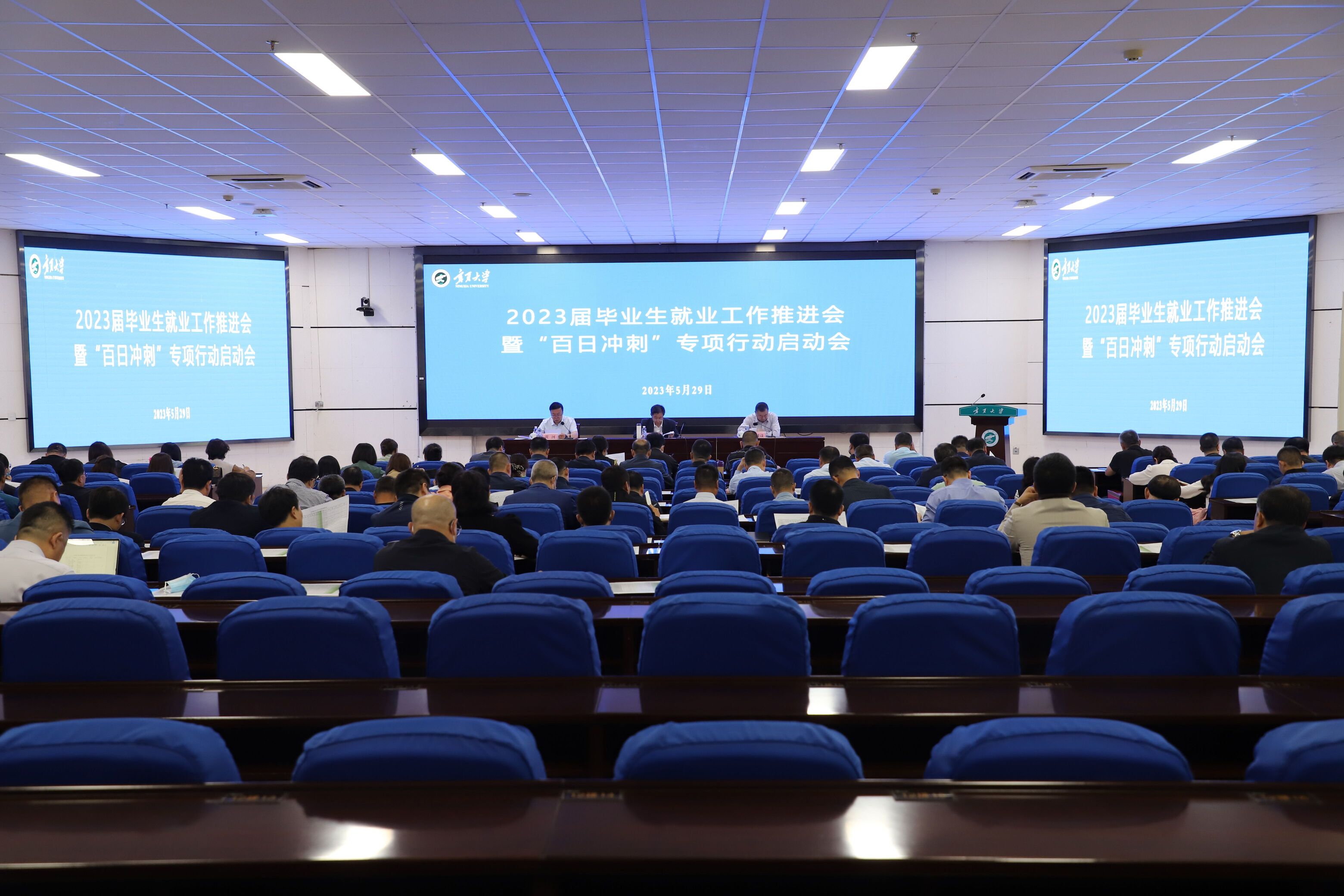 【永利集团304官网新闻中心讯 李明花/文、图】为全面贯彻落实党中央、国务院、自治区党委政府关于就业工作的决策部署,做好学校“学部制”“书院制”“大学工”“一站式”学生社区综合管理改革形势下的毕业生就业工作,落实落细就业优先政策,促进毕业生更加充分更高质量就业,5月29日,学校召开2023届毕业生就业工作推进会暨“百日冲刺”专项行动启动会。校党委书记李星,校党委常委、副校长李建设,校党委常委、副校长黄河出席会议,李建设主持会议。