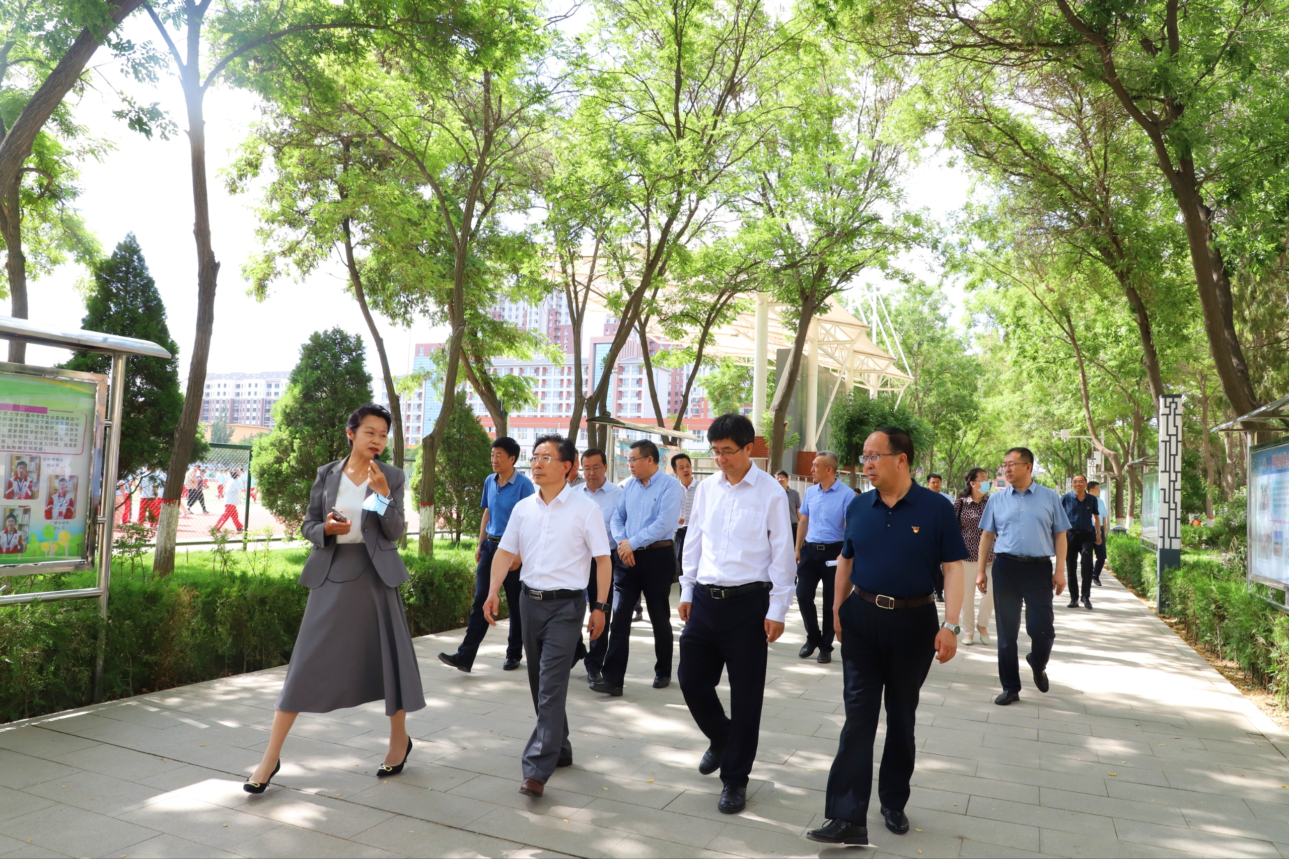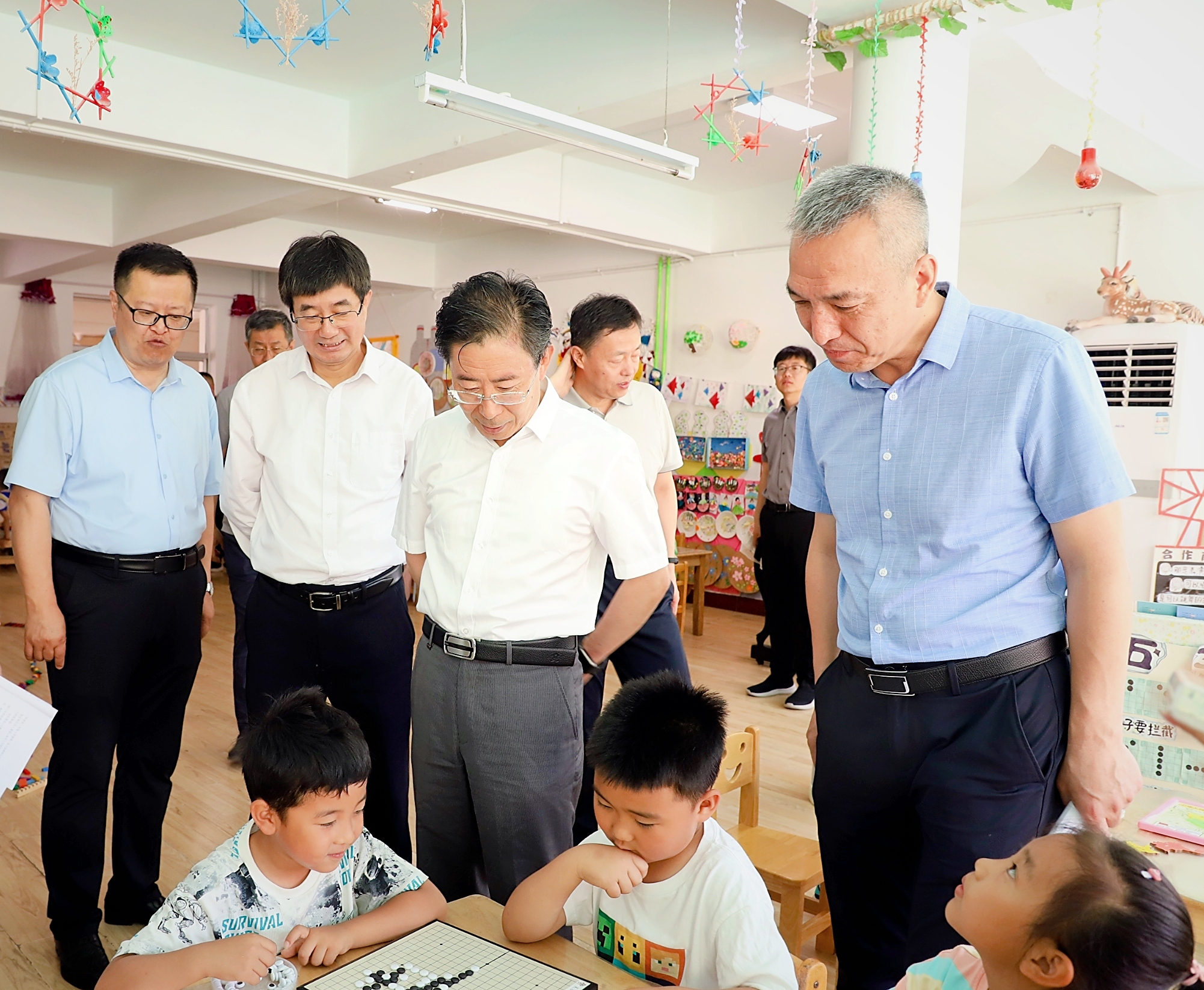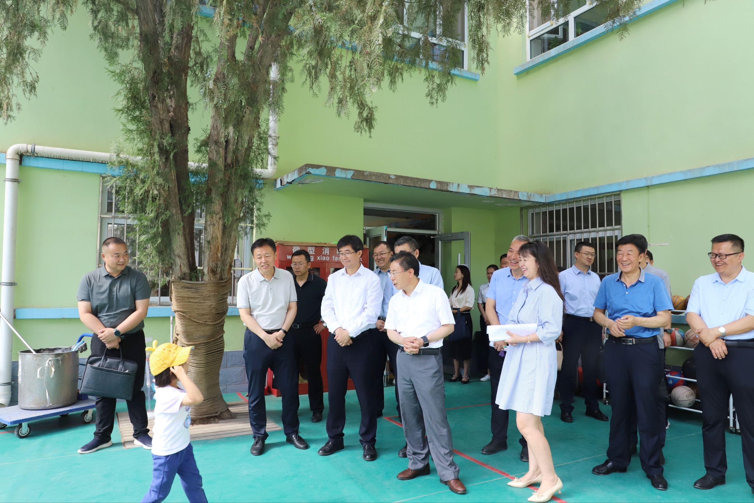 【永利集团304官网新闻中心讯 王文娣/文、图】为深入推进学习贯彻习近平新时代中国特色社会主义思想主题教育,深化永利教育综合改革,提升教育品质,努力办好人民满意的教育,6月16日,校党委书记李星,校党委副书记周震,党委常委、副校长李建设、刘炎胜,党委常委、组织部部长张立杰,党委常委、宣传部部长高永兴一行赴永利集团304官网幼儿园及附属中学开展调研,深入了解附属学校的教育教学和日常管理运行情况。
