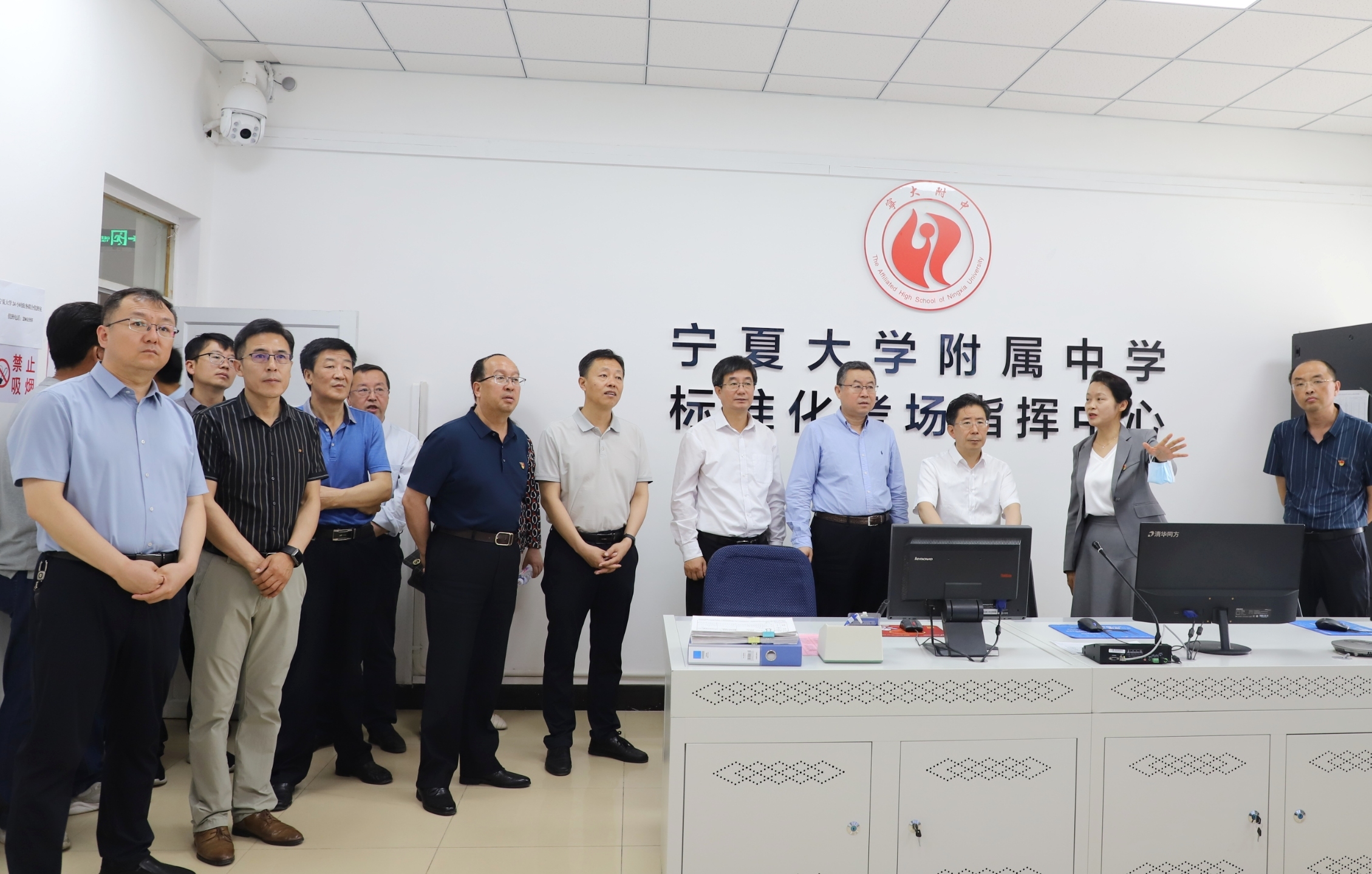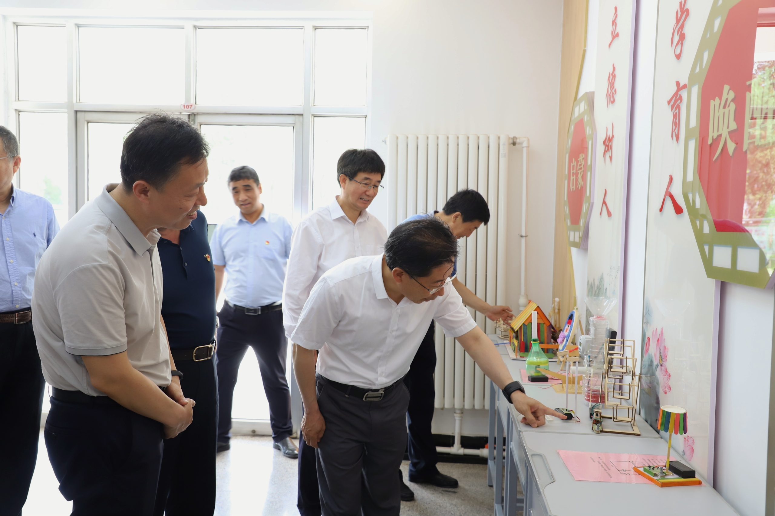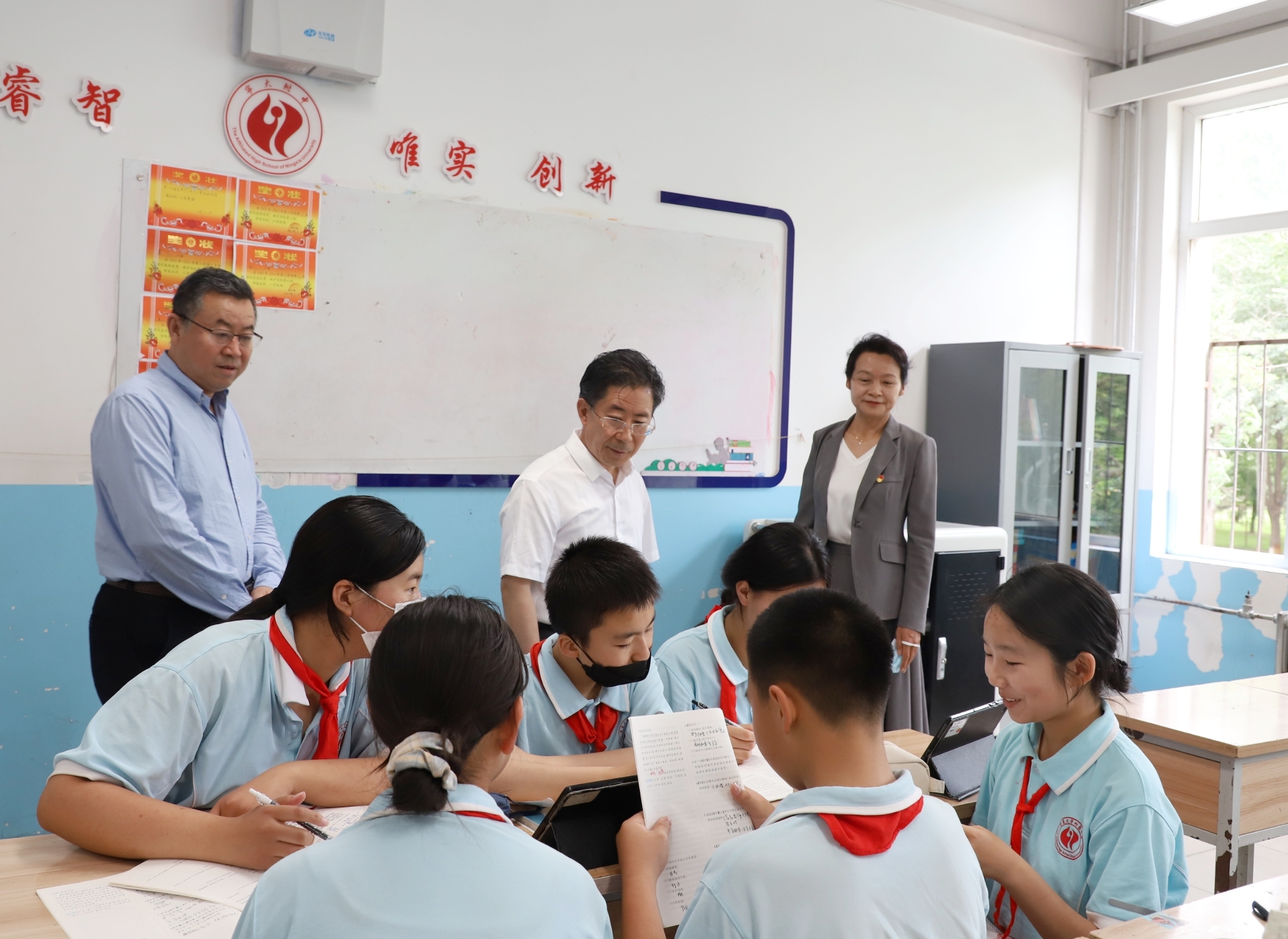 在永利集团304官网附属中学,李星一行察看了附属中学的基础设施建设、校园文化建设、学校食堂管理等情况,调研了课堂教学及课堂信息化建设、化学实验室建设情况,听取了附属中学校长亢燕关于课堂教学改革、小组教学等教改措施,以及附属中学推进“五育并举”工作情况和课程及教学改革阶段性成果的汇报。