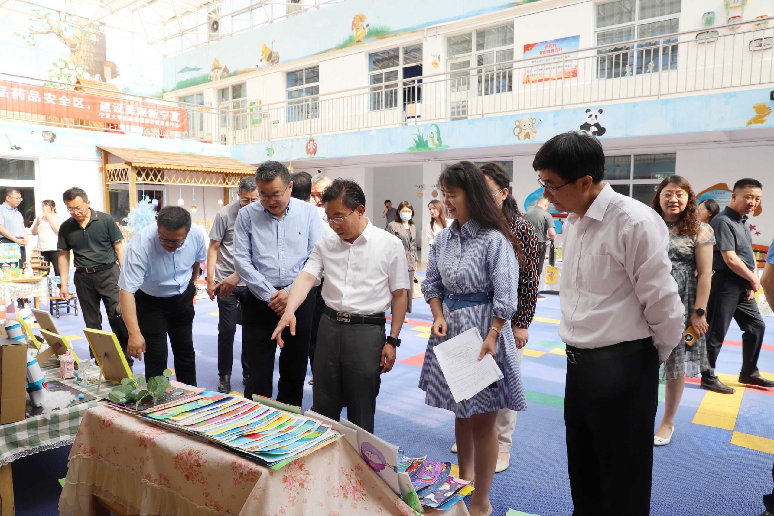 在永利集团304官网幼儿园,李星一行听取了幼儿园园长郑玲就幼儿园与西夏区政府合作办学、园内硬件设施建设等情况的汇报,实地查看了幼儿园新校舍规划布局、食堂改造情况、童乐动物园建设等情况,在户外操场、音乐大厅观摩了大班幼儿的安吉游戏、音乐游戏等教学活动及东园小班部小班组体育大循环活动等。李星强调,要加强幼教师资队伍建设,着力提高师资待遇、解决稳定师资和师资不足问题,促进教师专业成长,进一步提高幼儿园教育教学质量,继续保持和建设成为银川市一流幼儿园。