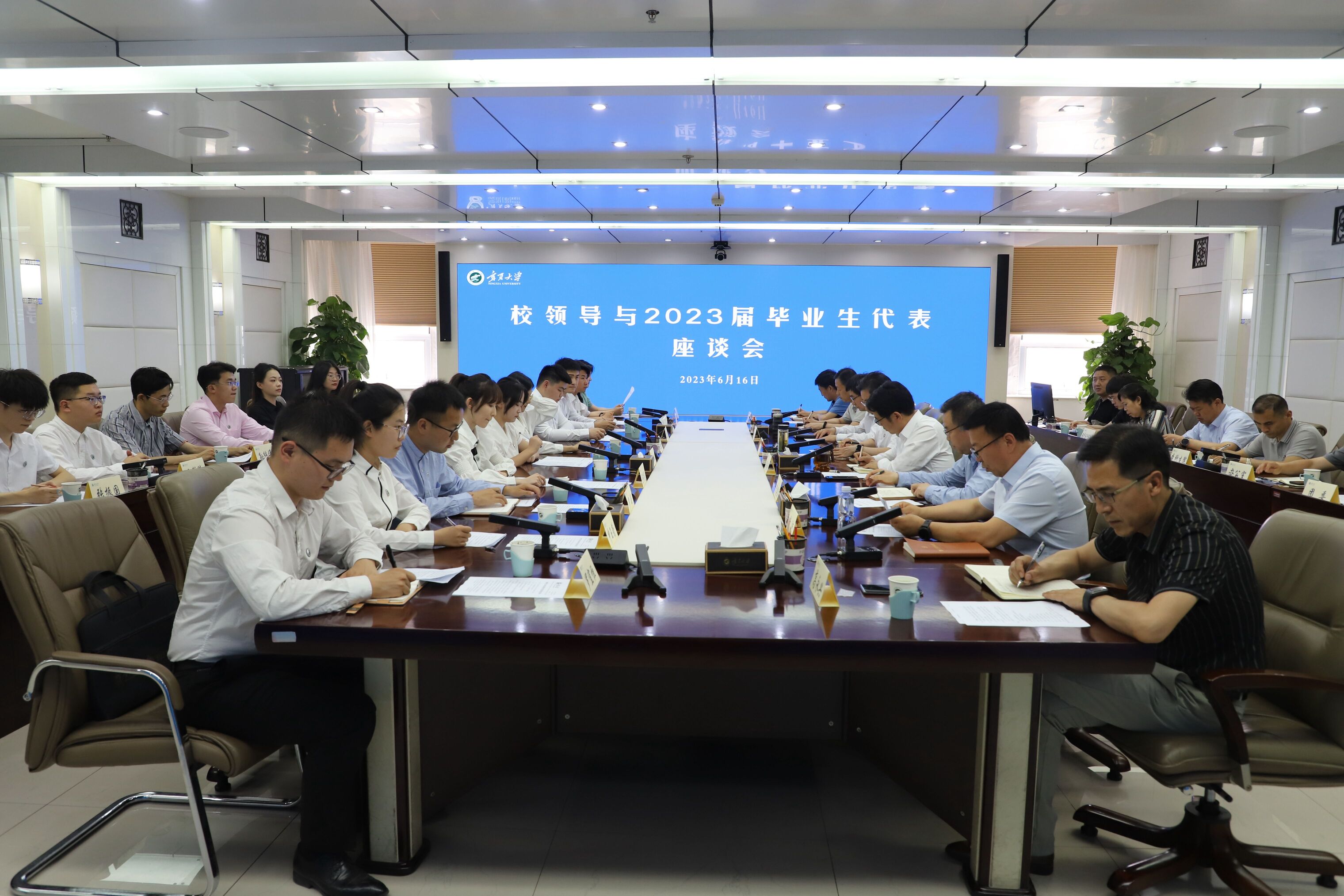 学校办公室、团委、本科生院、学生处、研究生院、保卫处、校友总会与教育发展基金会工作办公室、教学运行保障部、后勤保障部等相关单位负责人,2023届毕业生代表参加座谈会。