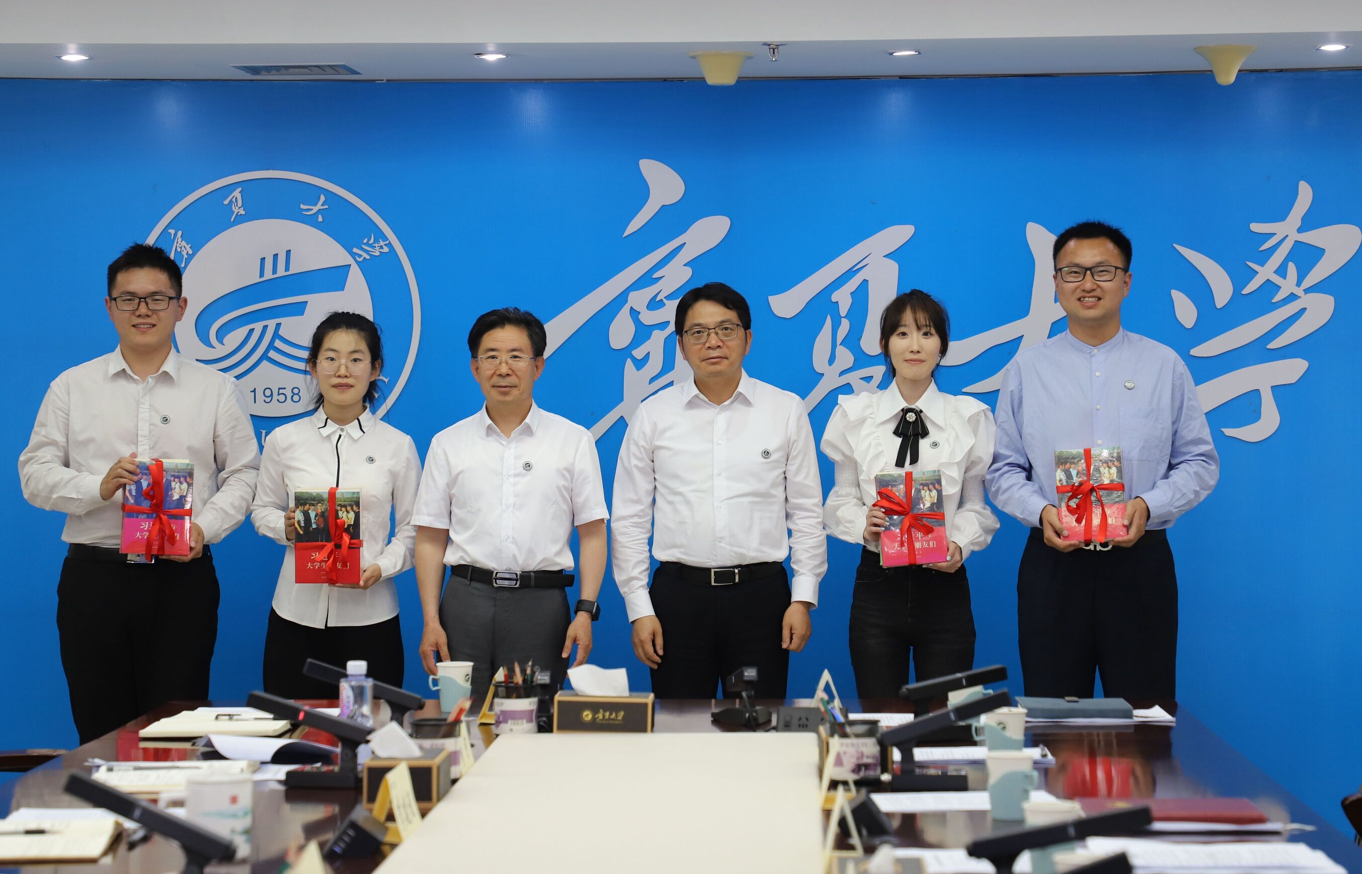 座谈会后,毕业生代表向学校赠送书法作品《风华正茂 桃李颂》。校领导向毕业生代表赠送了《习近平与大学生朋友们》等书籍。