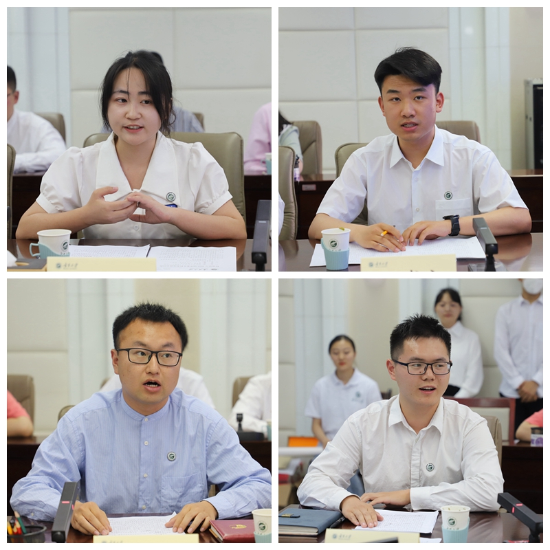 来自8个书院、学院的10位毕业生代表满怀眷念与不舍,深情回顾了在学校度过的青春岁月,分享交流在校期间的成长收获,畅谈未来学习工作的规划愿景,表达了对母校悉心培养的感恩情谊和对未来发展的美好祝福。他们分享了自己在保研、考研、就业择业方面的独特经历,并围绕学校人才培养、学科建设、创新创业、管理服务、课程设置、硬件设施等方面为学校发展建言献策。与会校领导认真听取了毕业生代表们提出的意见建议,就同学们关心的问题进行了回答和交流,并表示会对同学们提出的建议进一步跟进与完善,倾心为学生的成长成才提供更全面细致的服务。