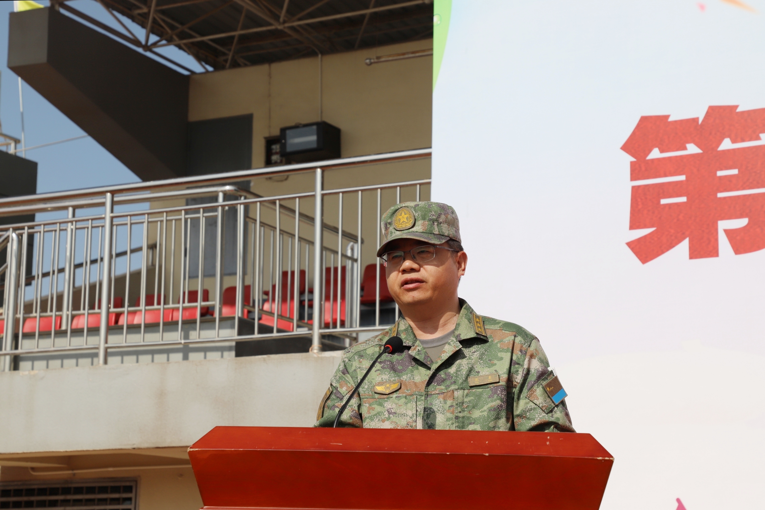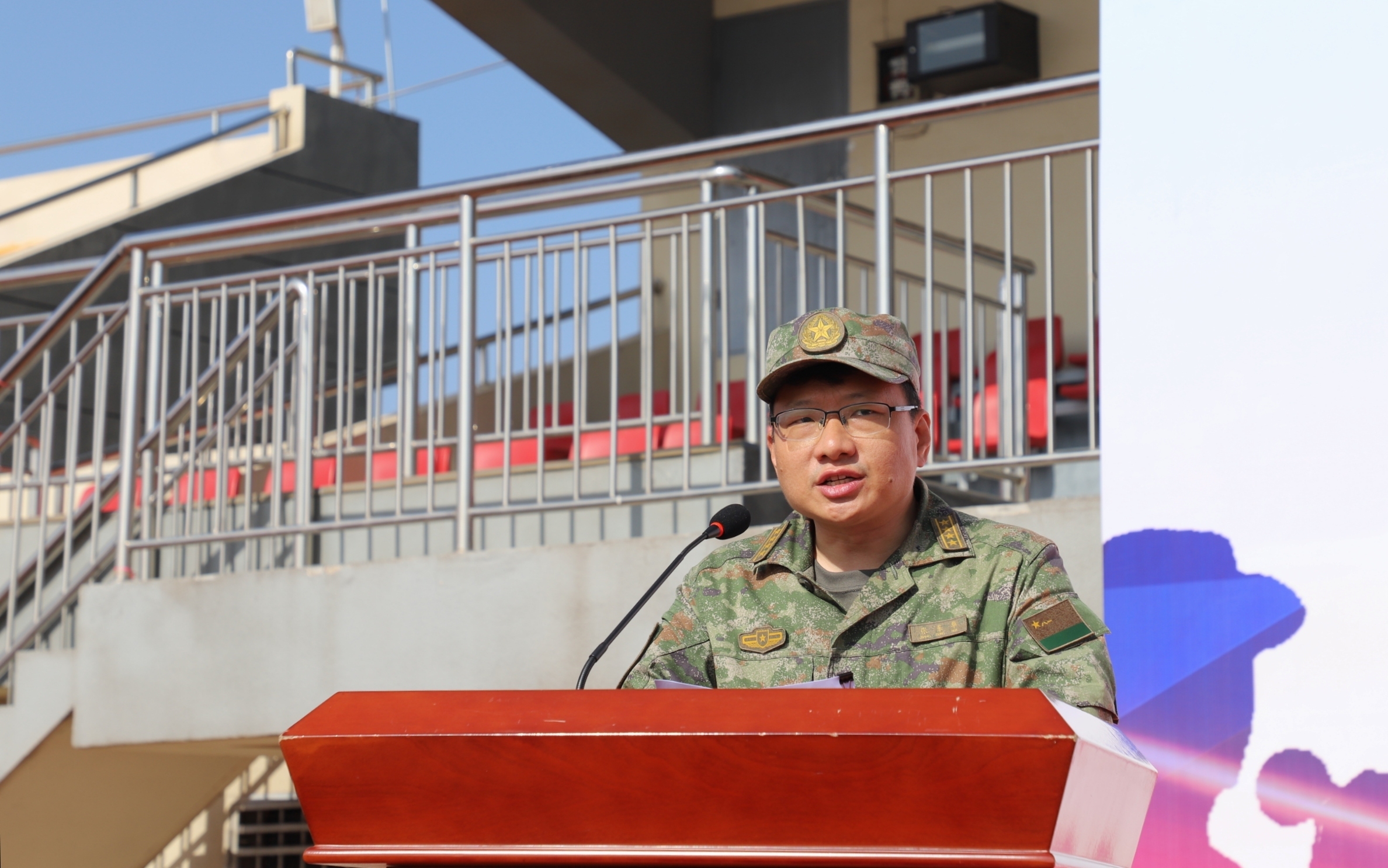 范东在开幕式上致贺辞。他强调,军事训练营活动是学生实施素质教育和国防教育的有力举措,是提高思想觉悟、训练意志品质的有效途径,也是同学们接触部队生活、了解国防知识的实践课堂,更是挑战自我、提升自我的重要过程,不仅能增强体魄,更能提升国防意识,且有助于塑造坚韧不拔、迎难而上的坚强品格,是同学们走进火热练兵场、零距离接触大国利器、感受强大祖国力量的一次难得机会。