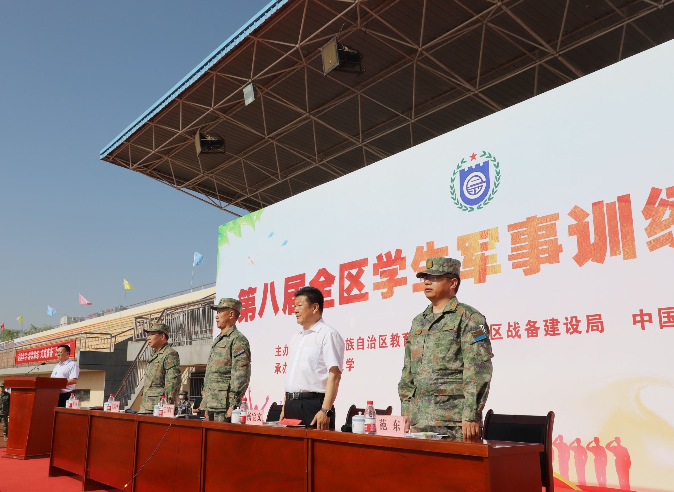 【永利集团304官网新闻中心讯 王文娣/文 王文娣 龚旭峰 姬晓姗/图】为进一步推动学生军训工作高质量发展,根据年度任务安排,6月19日,由宁夏回族自治区教育厅、宁夏军区战备建设局、中国人民解放军94136部队主办,永利集团304官网承办的自治区第八届学生军事训练营开营仪式在永利隆重举行。自治区征兵和学生军训工作领导小组副组长、宁夏军区少将副司令员王同广,自治区教育督导室副主任督学杨宝文,宁夏军区战备建设局大校副局长张东华,中国人民解放军94136部队上校副政治委员范东参加开营仪式。开营仪式由永利集团304官网党委常委、副校长黄河主持。