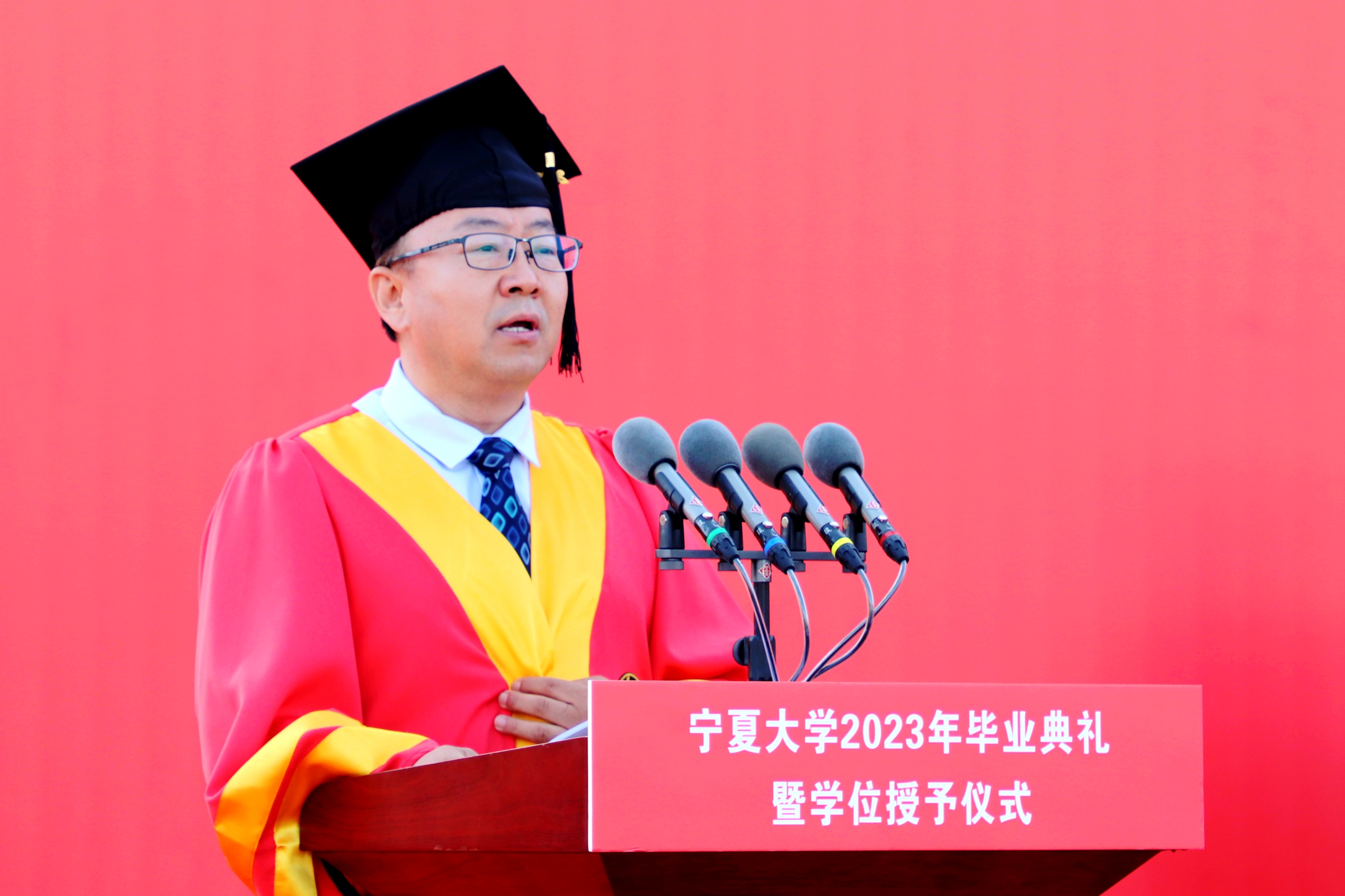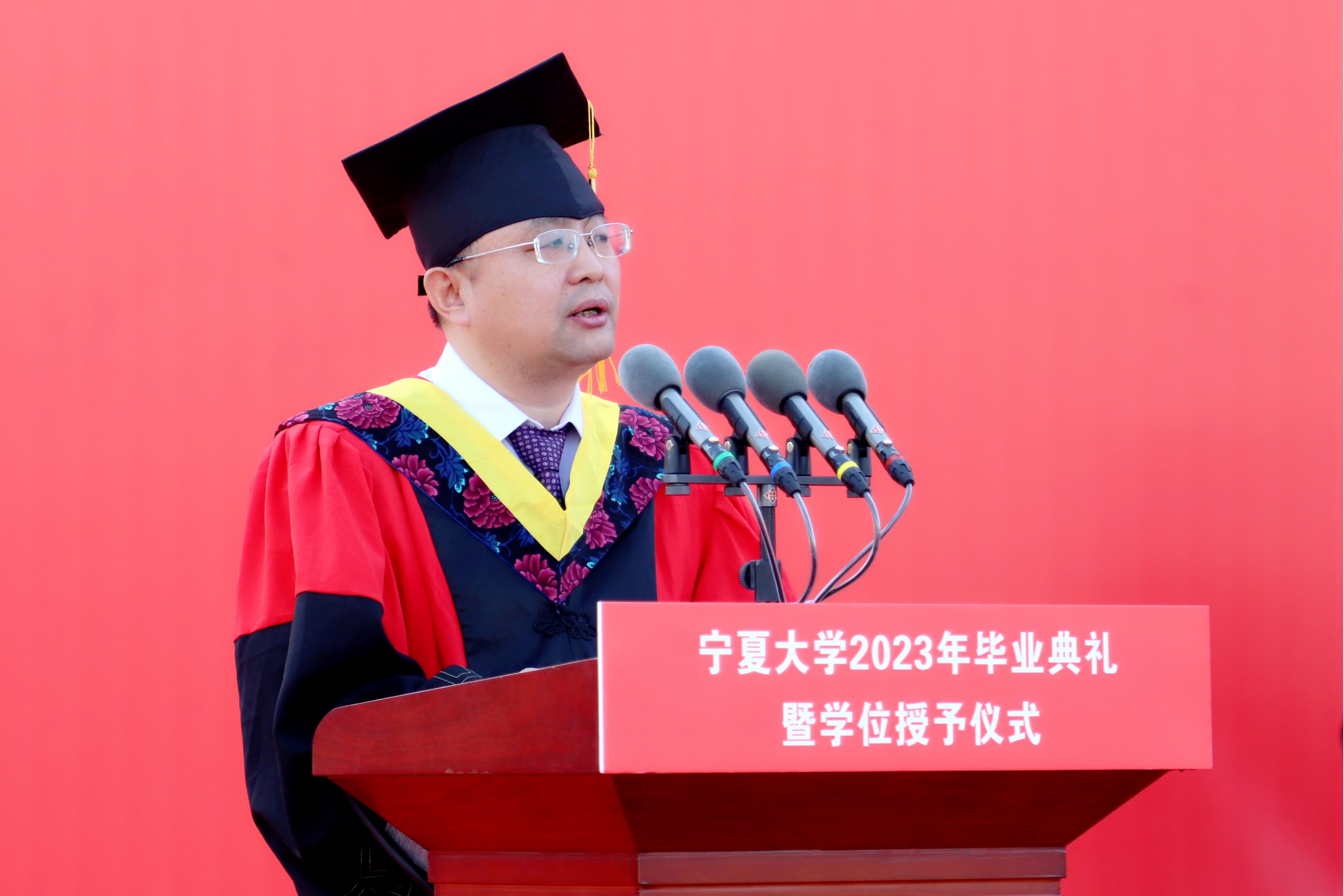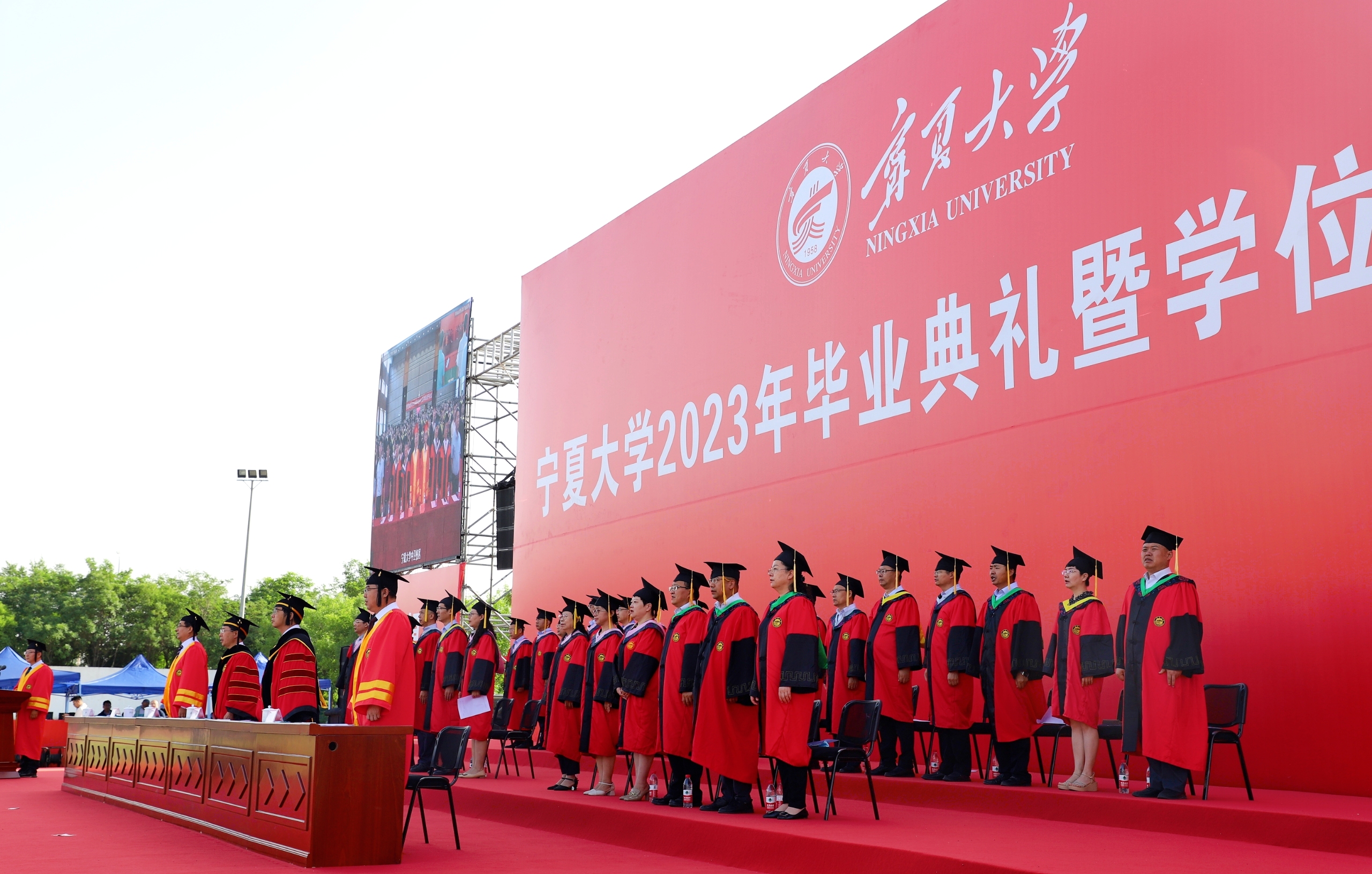 【永利集团304官网新闻中心讯 李明花/文 张景 李明花 王文娣 姬晓姗 中卫校区/图】6月20日上午8时,永利2023年毕业典礼暨学位授予仪式在文萃校区田径场和中卫校区应理报告厅同时举行,28名博士研究生,2167名硕士研究生,4658名本科生圆满完成学业,即将踏上新的人生旅途。校领导李星、彭志科、周震、李建设、黄河、刘炎胜出席毕业典礼,校党委常委、副校长黄河主持毕业典礼。