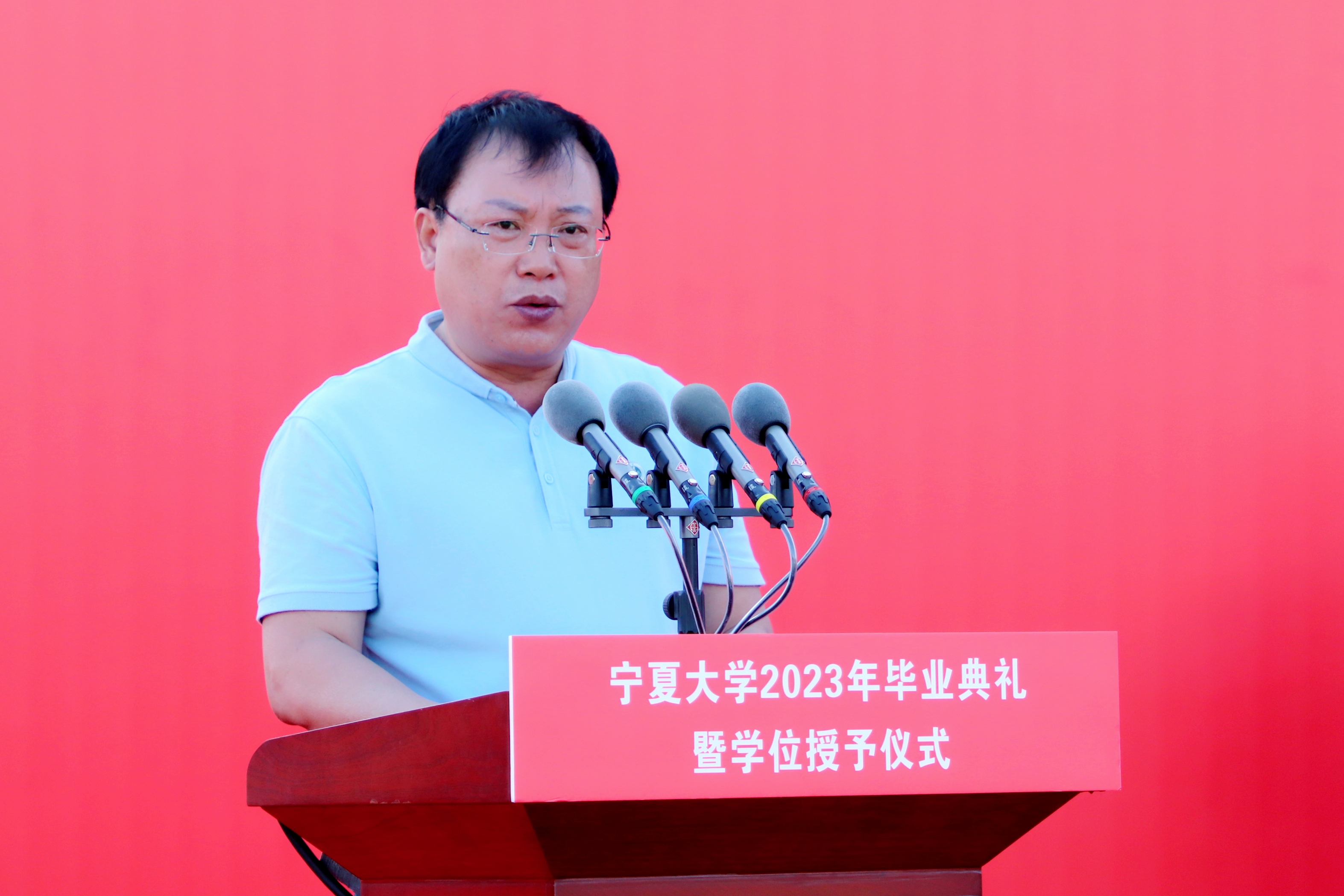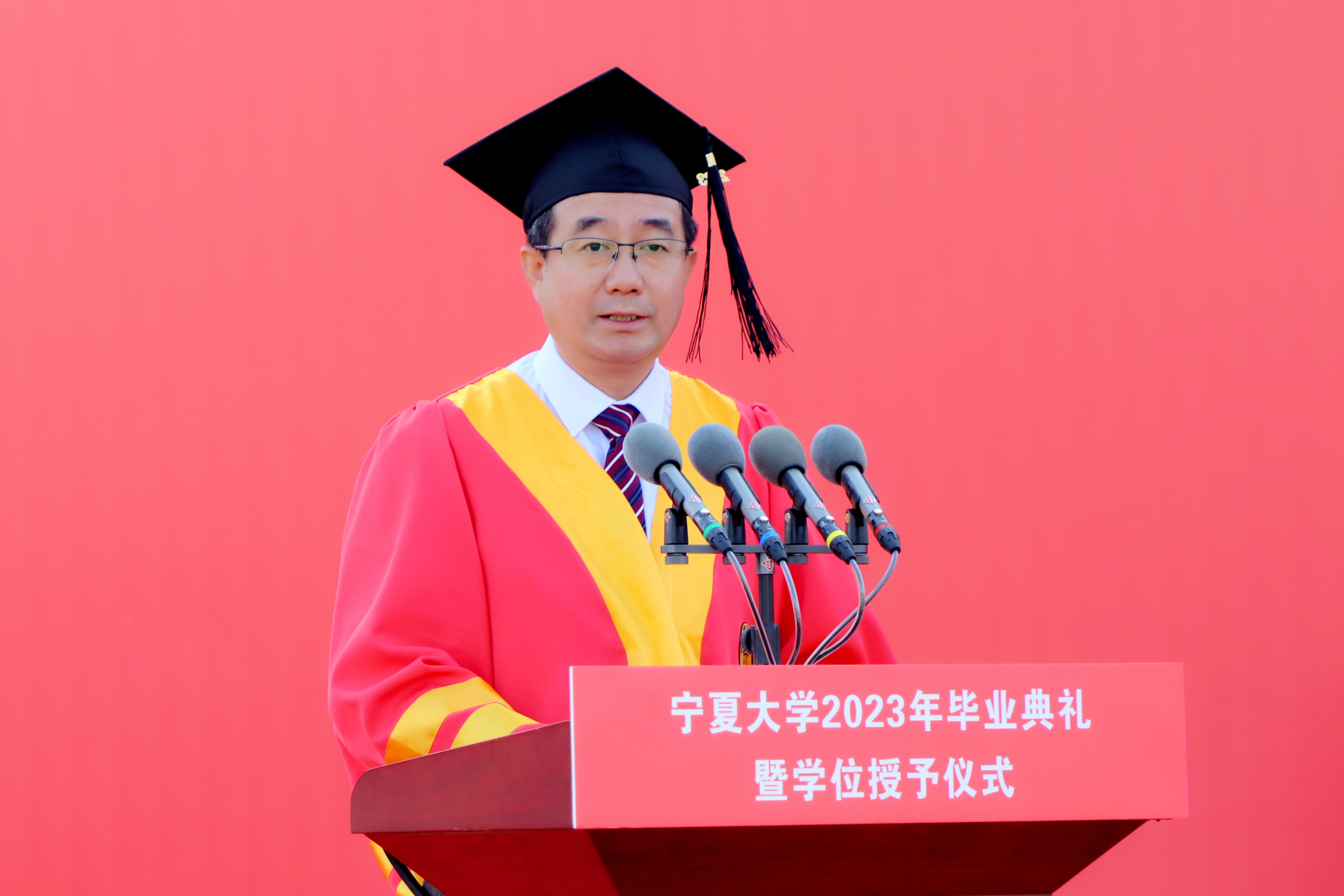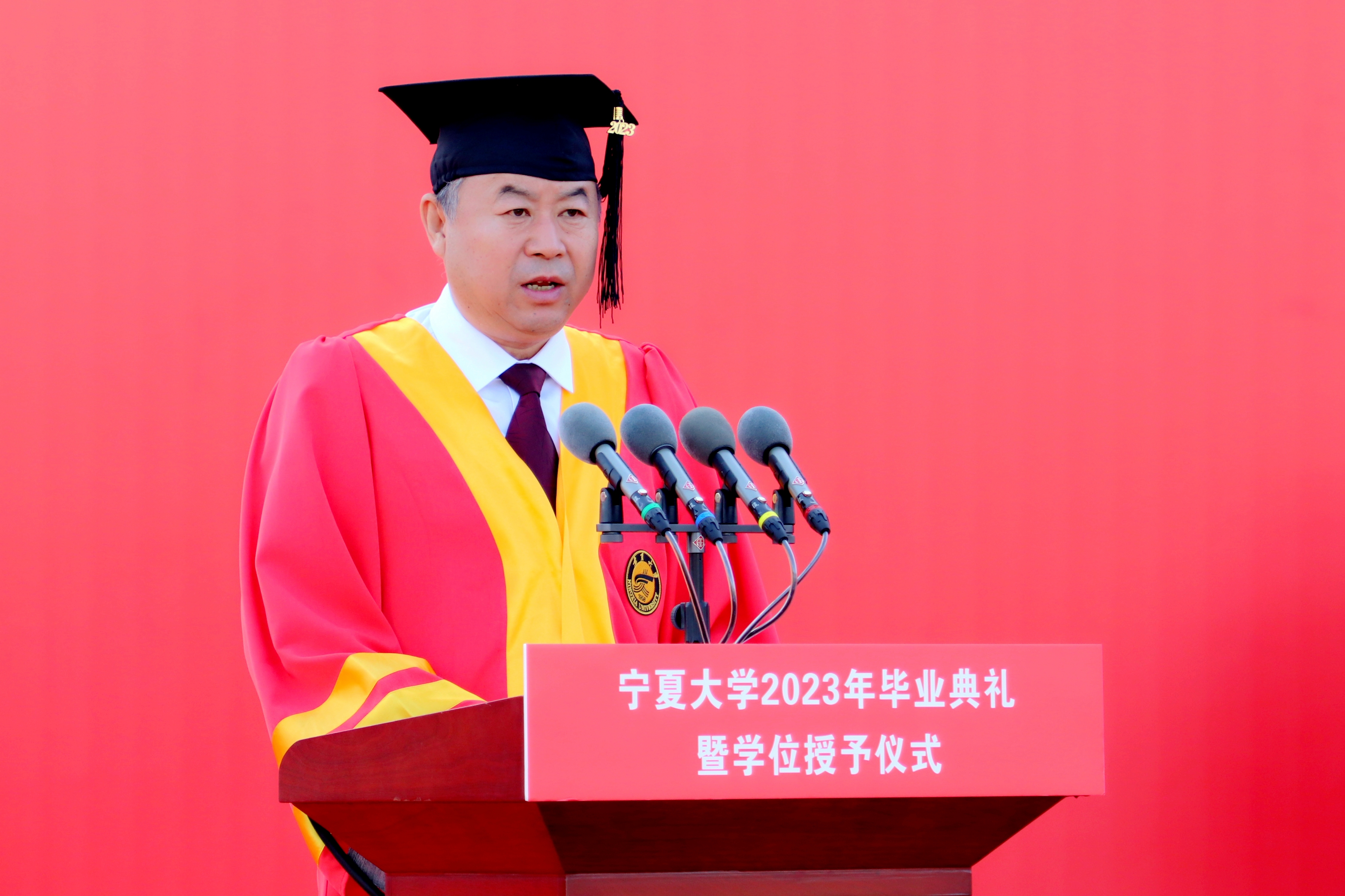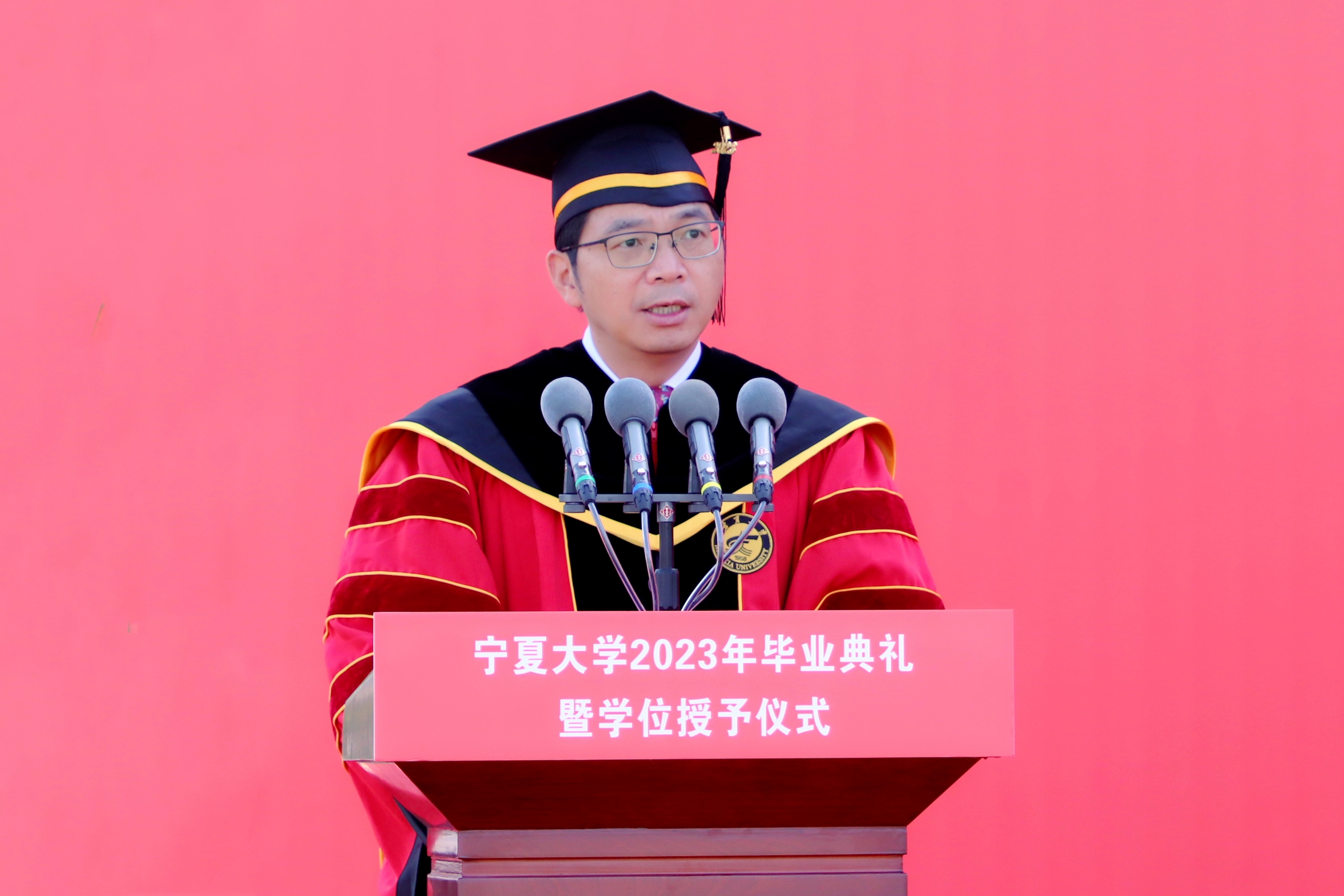 【永利集团304官网新闻中心讯 李明花/文 张景 李明花 王文娣 姬晓姗 中卫校区/图】6月20日上午8时,永利2023年毕业典礼暨学位授予仪式在文萃校区田径场和中卫校区应理报告厅同时举行,28名博士研究生,2167名硕士研究生,4658名本科生圆满完成学业,即将踏上新的人生旅途。校领导李星、彭志科、周震、李建设、黄河、刘炎胜出席毕业典礼,校党委常委、副校长黄河主持毕业典礼。