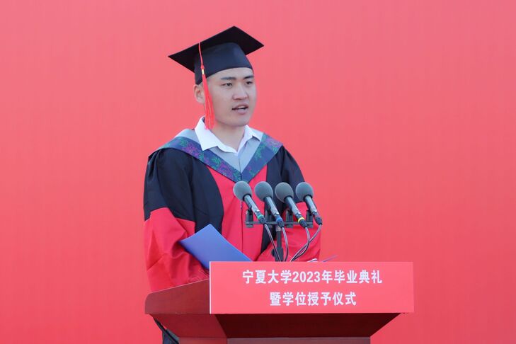 “‘用脚步丈量祖国大地,用眼睛发现中国精神,用耳朵倾听人民呼声,用内心感应时代脉搏’,是习近平总书记对我们的殷切期望,同时也为我们指明了奋斗目标和前行方向。”励行书院2020级生物学专业博士毕业生代表李振凯分享了自己跟随导师在同心县青羊泉村进行科技扶贫的经历,他表示,毕业不是结束,恰恰是新的开始,希望学弟学妹们努力让青春华章唱响在祖国和人民最需要的地方,用实际行动争做堪当民族复兴大任的时代新人。