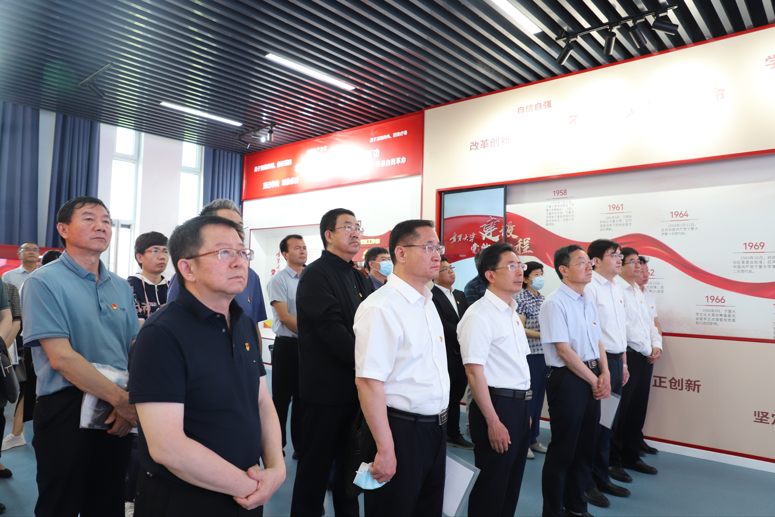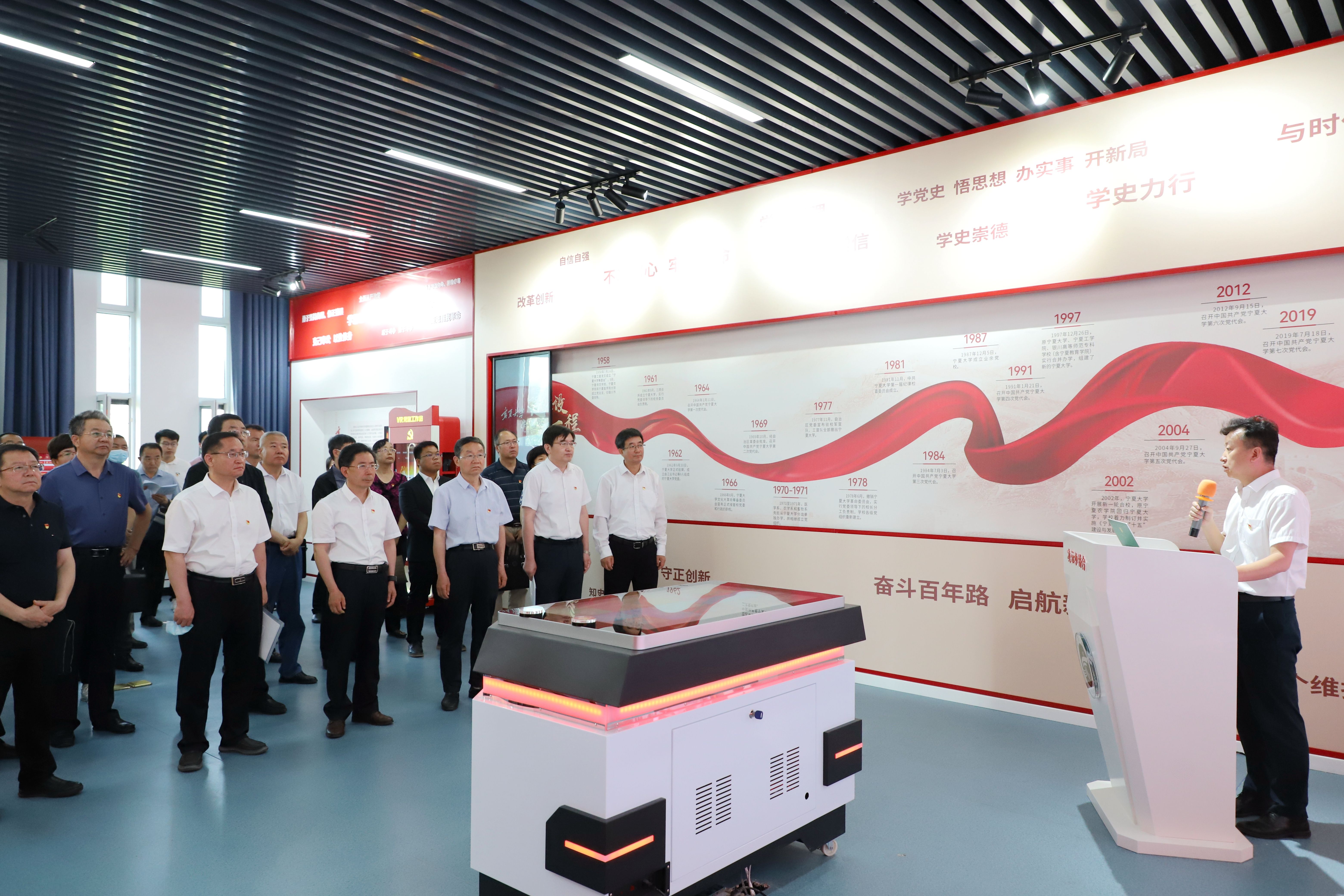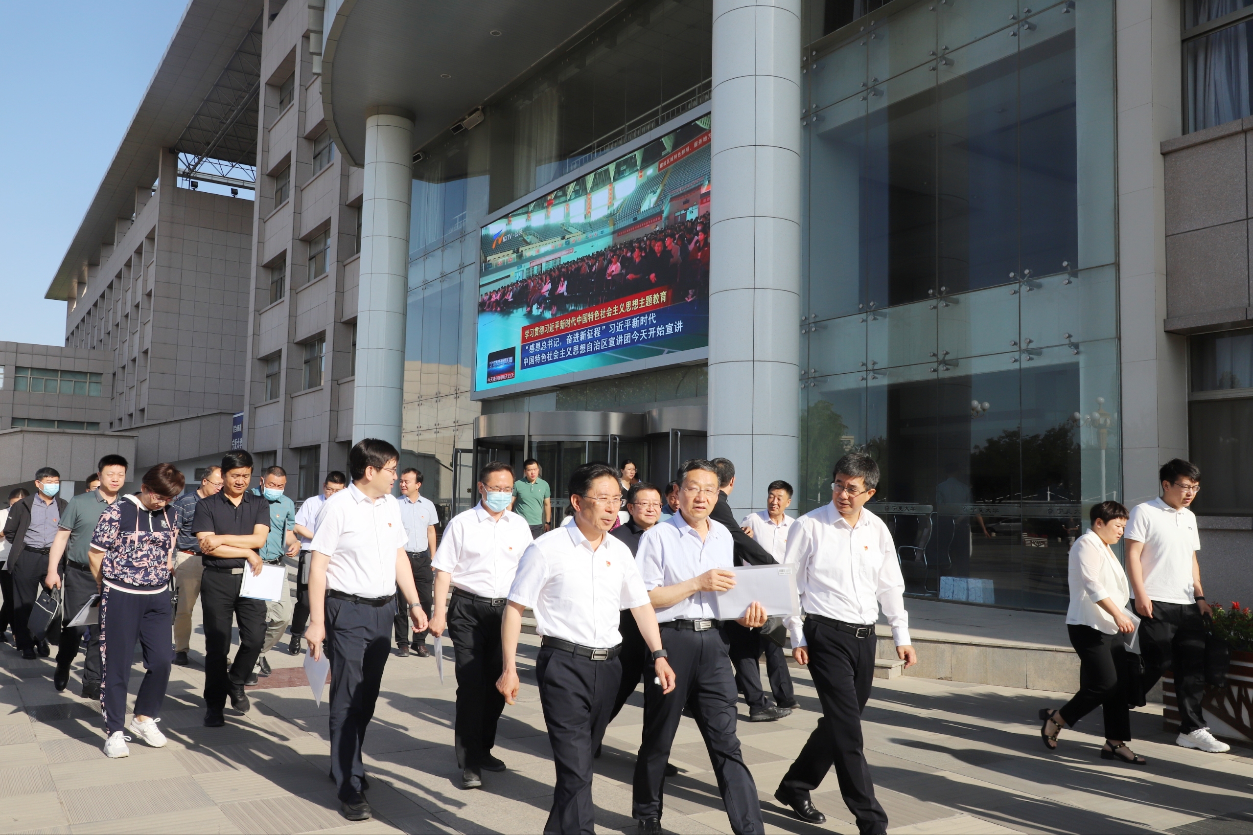 观摩团一行在校园参观了主题教育宣传展板及电子大屏,观看了主题教育宣传片,李星、周震现场介绍了永利在主题教育组织实施、理论学习、调查研究、推动发展、检视整改、建章立制等方面的主要做法。