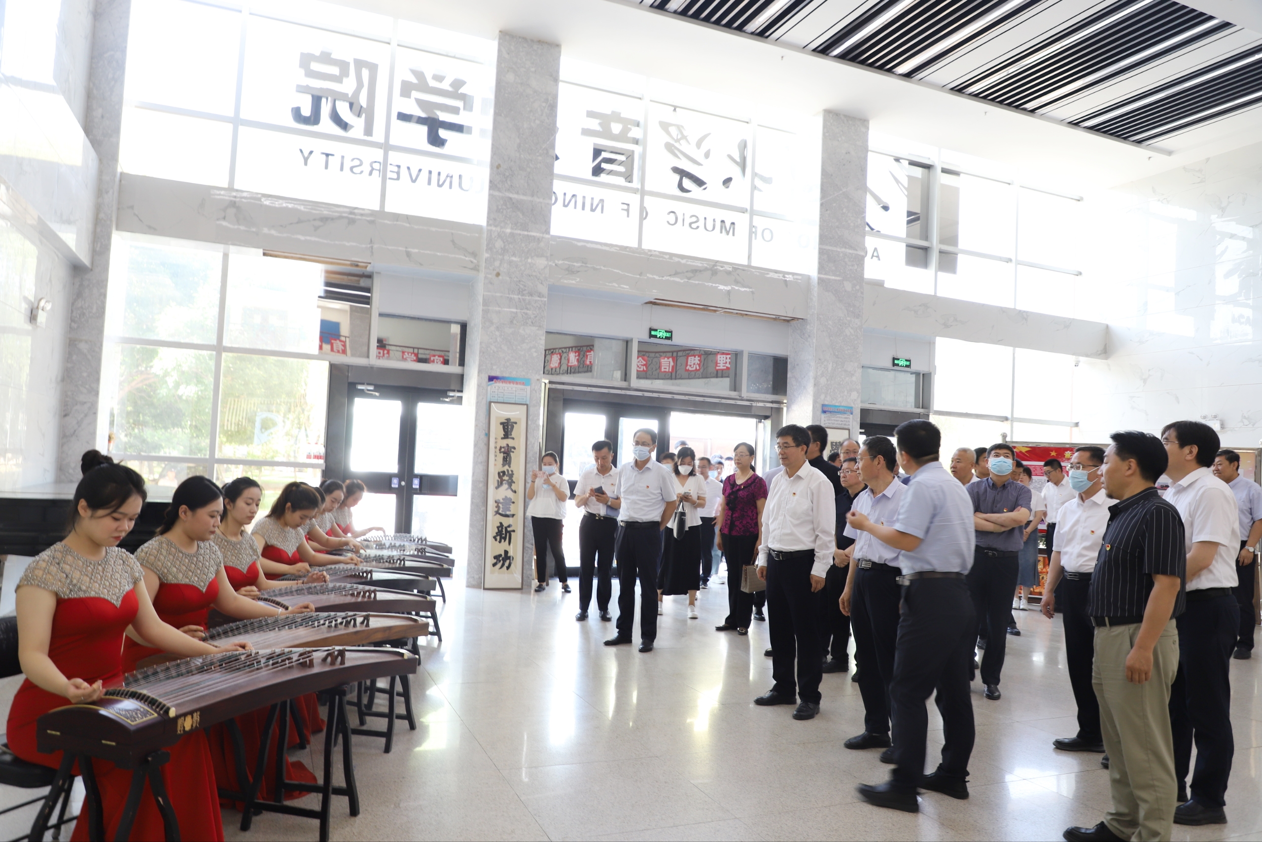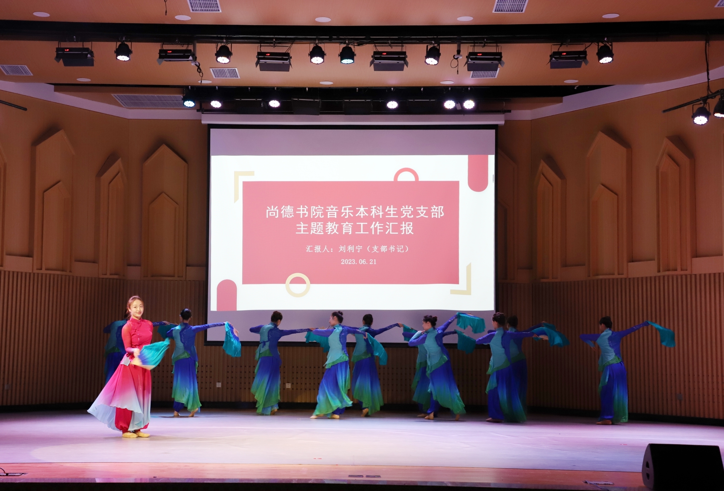 在音乐学院,尚德书院本科生党支部书记刘利宁从铸魂育人确保主题教育站位“高度”、守正创新拓展主题教育形式“广度”、调查研究彰显主题教育成果“深度”、立足实践提升主题教育效能“温度”四个方面介绍了学生党支部主题教育开展情况,观摩团成员一同观看了主题教育展演节目《一条大河》,参观了主题教育书法绘画摄影展。