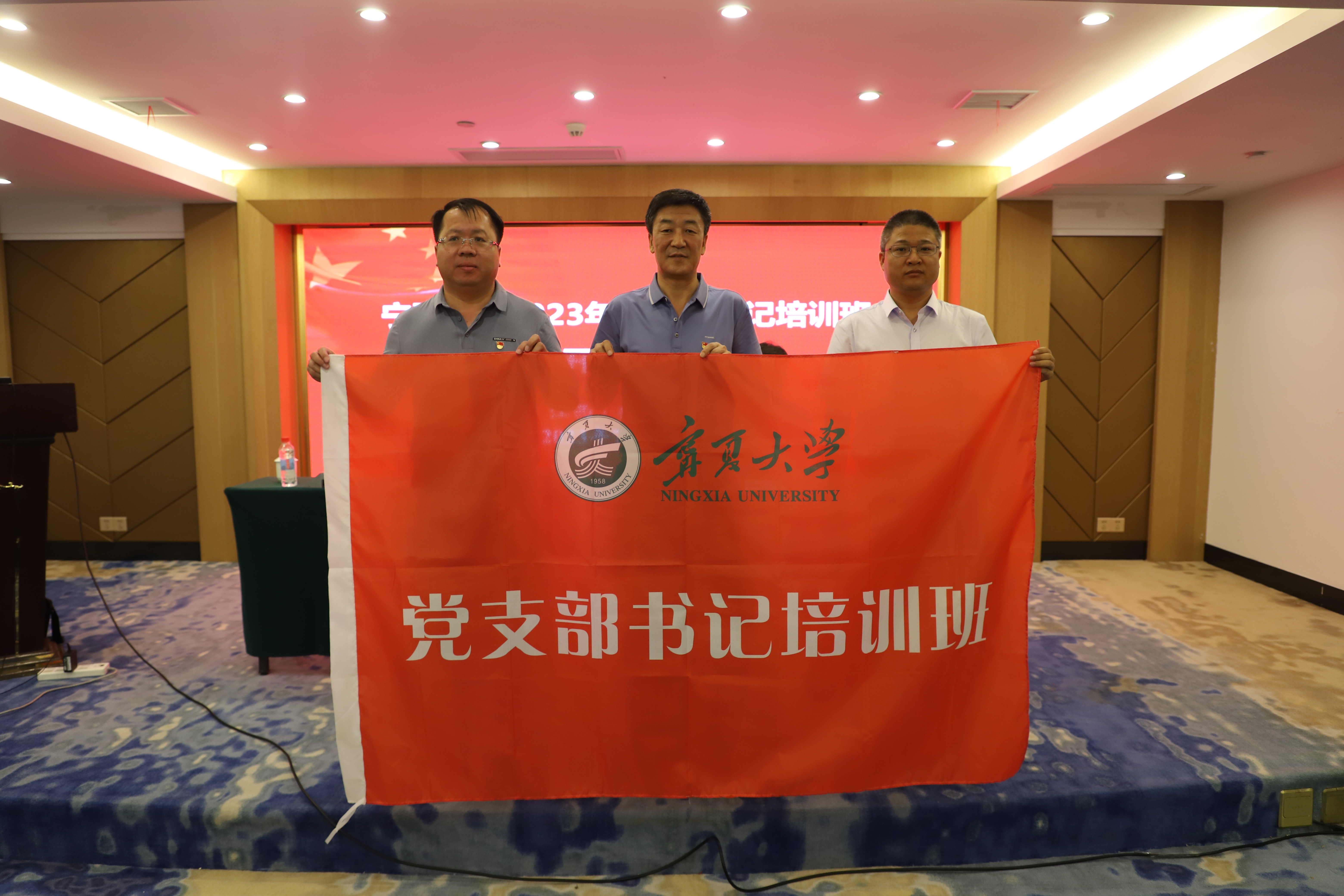 张立杰为培训班授班旗。基建处副处长刘斌宣读学员培训纪律。
