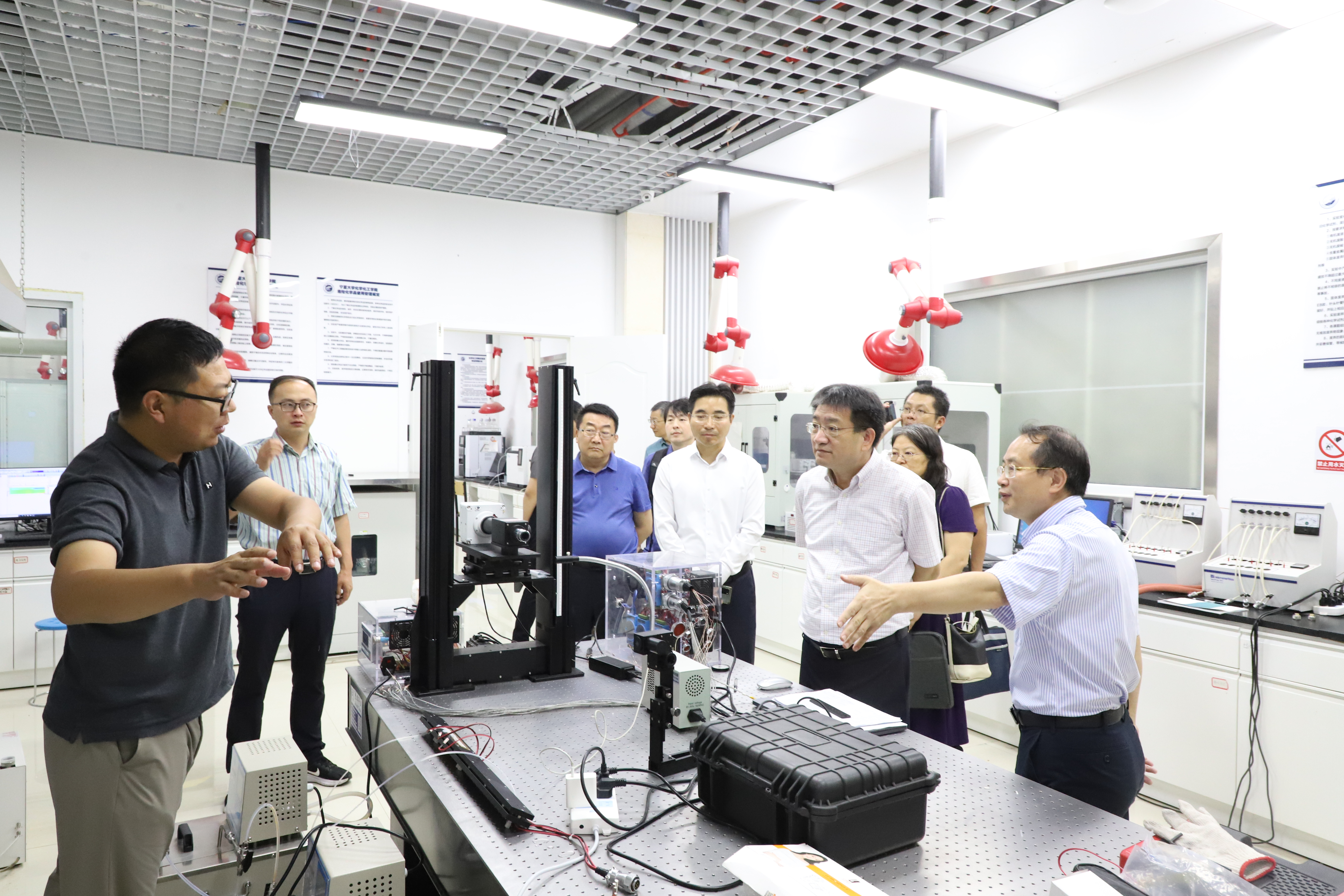 调研组先后到怀远校区怀远楼、贺兰山校区科技楼实地调研了民族学大型系列研究平台(中华民族共同体研究院、西夏学研究院)建设情况、化学工程与技术大型系列研究设施(省部共建煤炭高效利用与绿色化工国家重点实验室、校企联合研发创新体)建设情况,同调研点相关负责人进行深入交流。