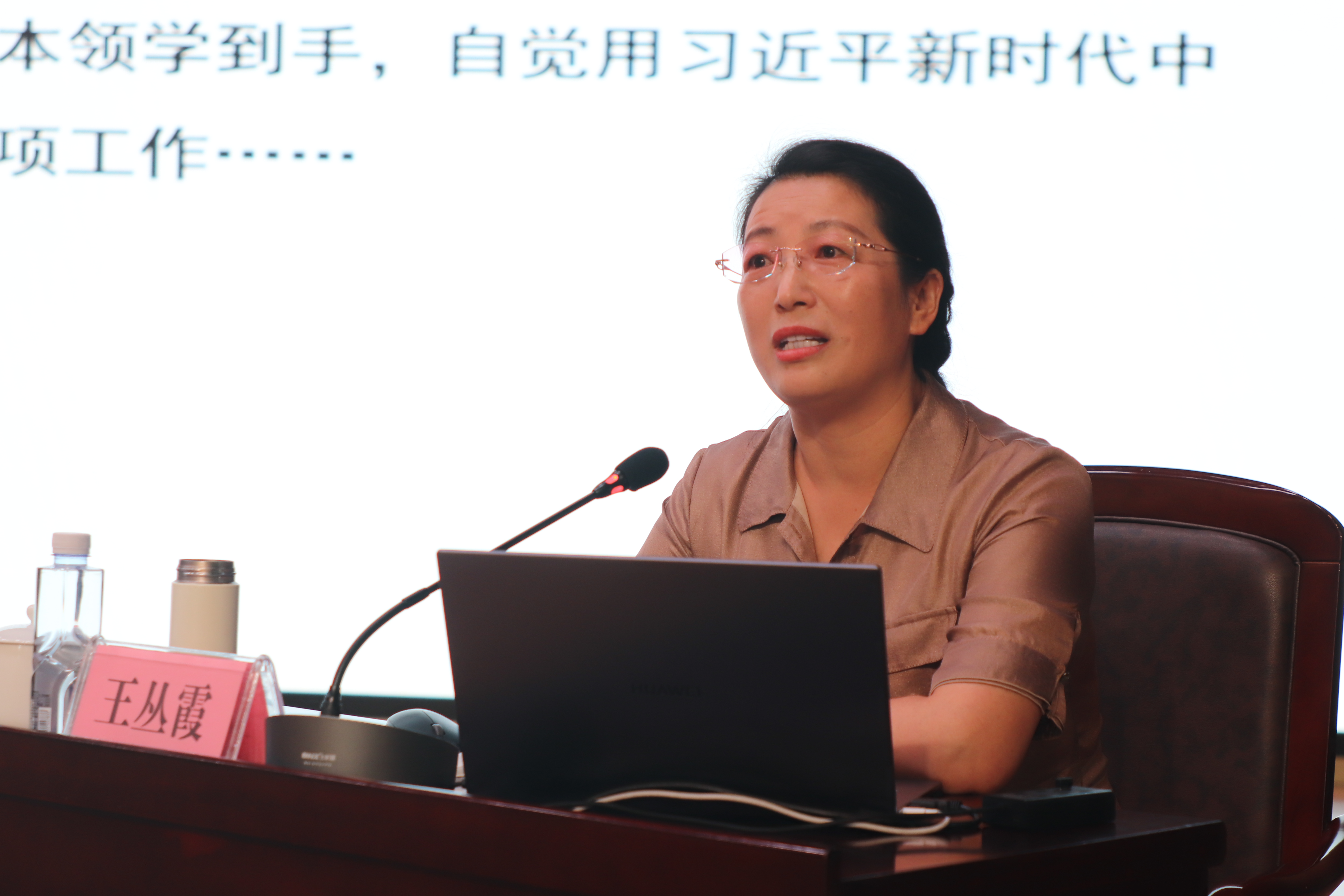 下午,宁夏区委党校副校长、宁夏行政学院副院长王丛霞教授受邀以《习近平新时代中国特色社会主义思想的世界观和方法论》为题,围绕从“四维视角”全面把握其生成逻辑、从“哲学层面”全面领会习近平新时代中国特色社会主义思想、深刻认识和把握“六个必须坚持”的丰富内涵三个方面的内容,就党的二十大精神进行了专题辅导。