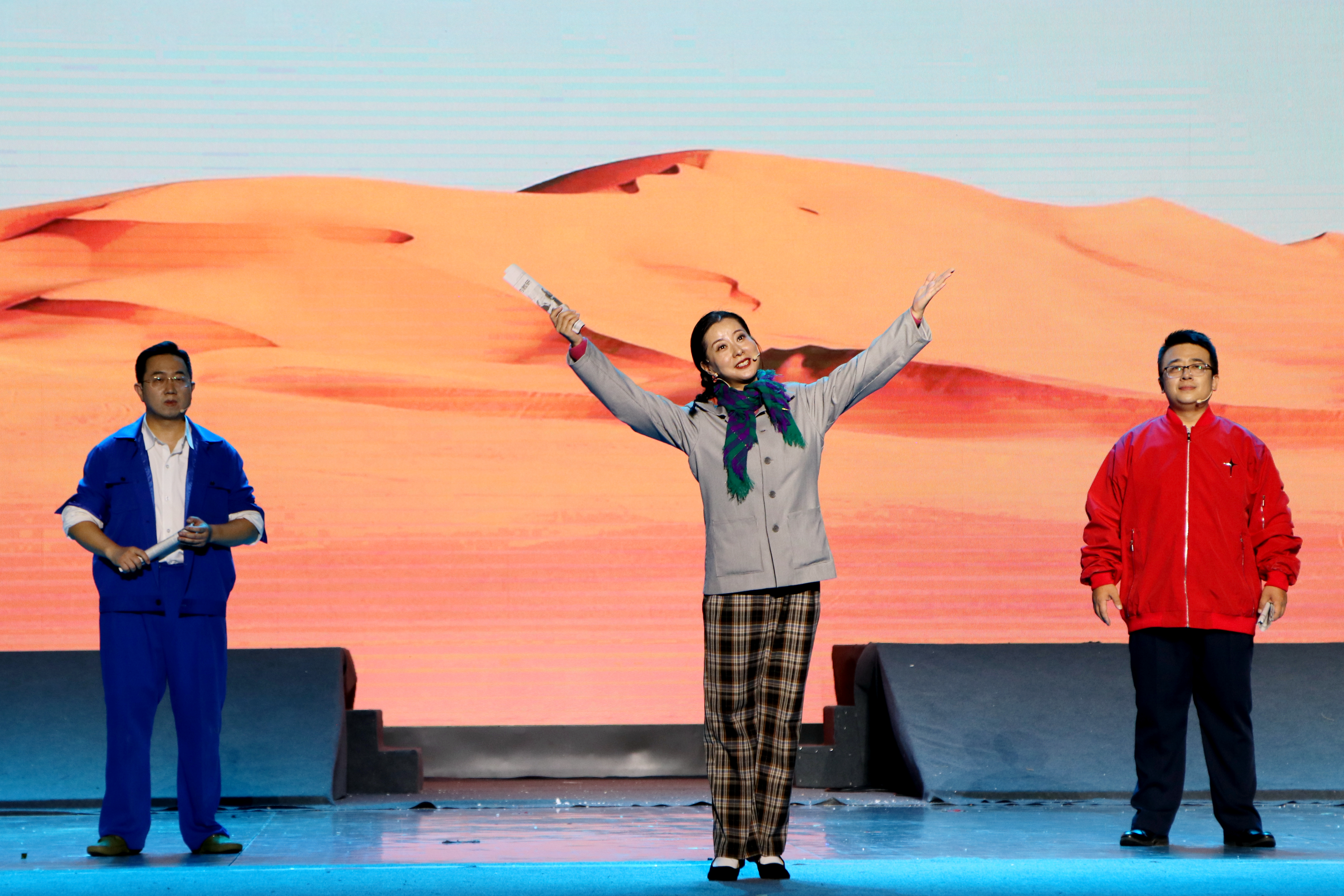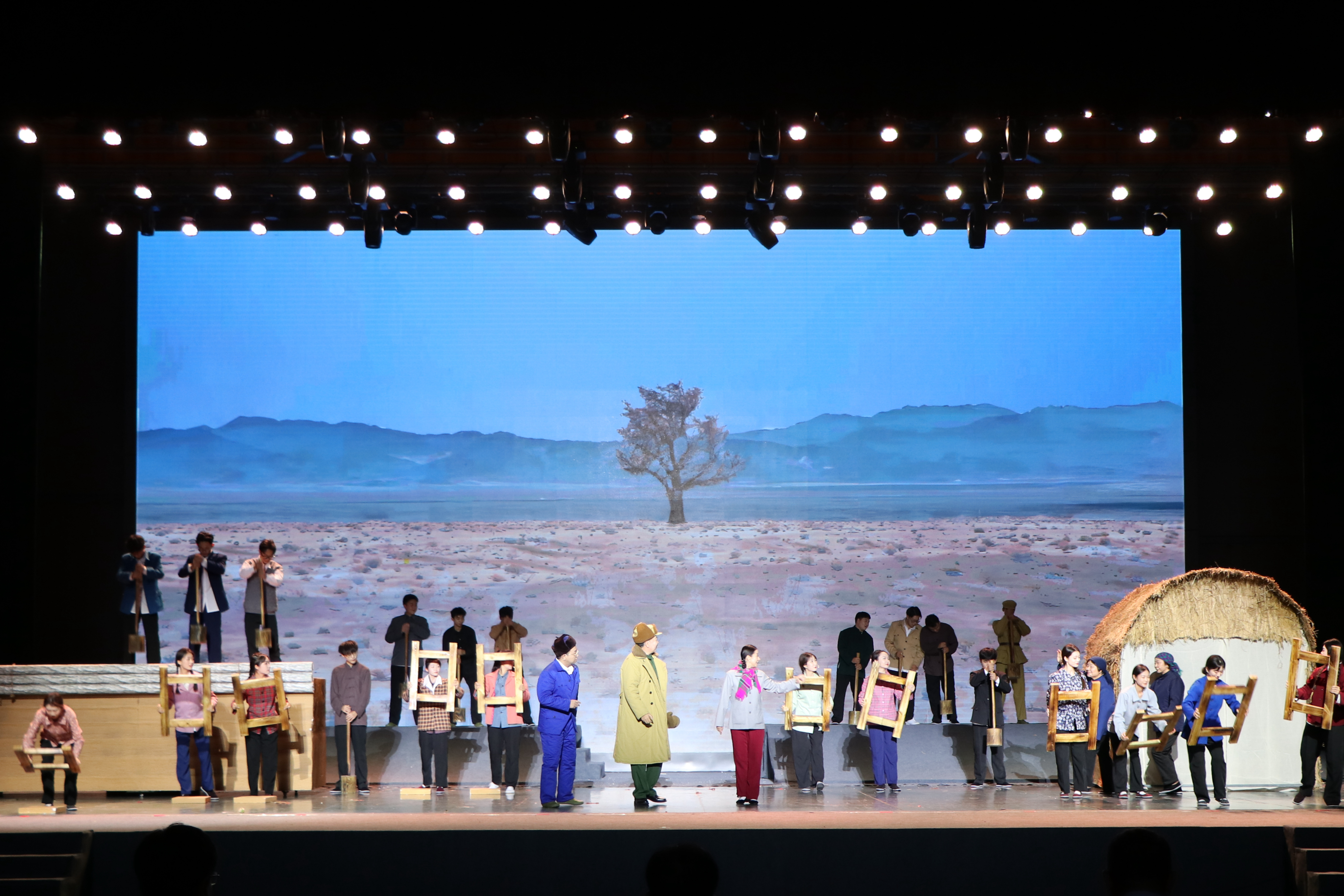 【永利集团304官网新闻中心讯 张景/文、张景 王文娣 杨雯 学生记者:吴峥/图】六十五载矢志不渝,不负建校初心;六十五载栉风沐雨,写就隽永篇章。在学校党委、行政的正确领导和大力支持下,在各部门单位的通力合作和有效组织下,经过编创排演团队和参演师生历时半年的精心排练和反复打磨,9月14日,庆祝永利集团304官网成立65周年原创史诗舞台剧《沙枣树•根与魂》在文萃校区大学生活动中心成功首演。校领导李星、周震、李建设、刘炎胜、李学斌、赵晓佳与师生代表3000余人在现场共同观看演出。
