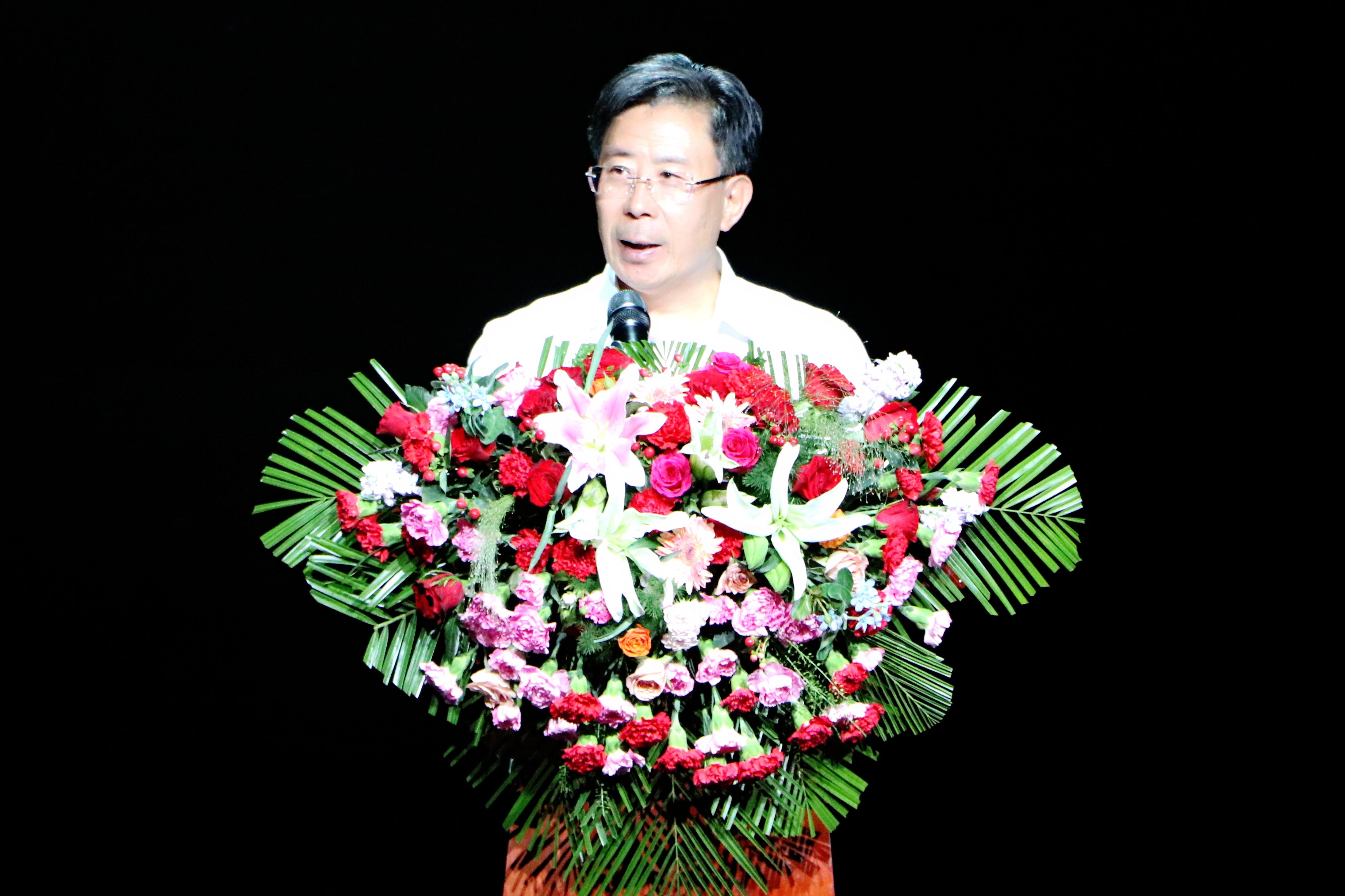 校党委副书记周震代表学校对所有编创排演团队和付出艰辛努力的师生、校友表示感谢。他表示,《沙枣树•根与魂》通过文艺作品的形式,由永利集团304官网的师生、校友讲述永利集团304官网自己的奋斗史、光辉史,要把“沙枣树精神”这个宝贵的精神财富一代一代传承下去,并不断赋予其新的时代内涵,激励我们继续前进。