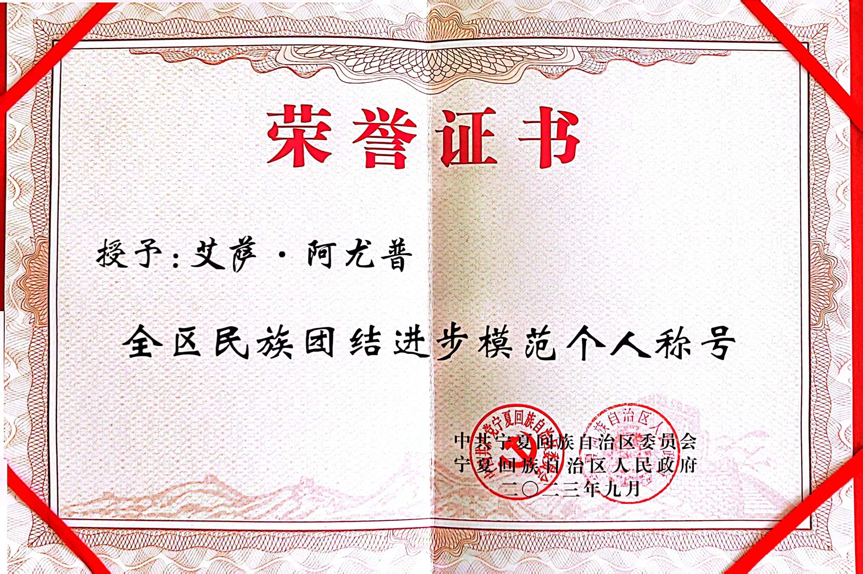 【永利集团304官网新闻中心讯 党委统战部】9月11日,全区第九次民族团结进步表彰大会在银川召开,对近年来为民族团结进步事业做出突出贡献的模范集体和模范个人进行了表彰。永利勤学书院辅导员艾萨·阿尤普荣获“全区民族团结进步模范个人称号”。