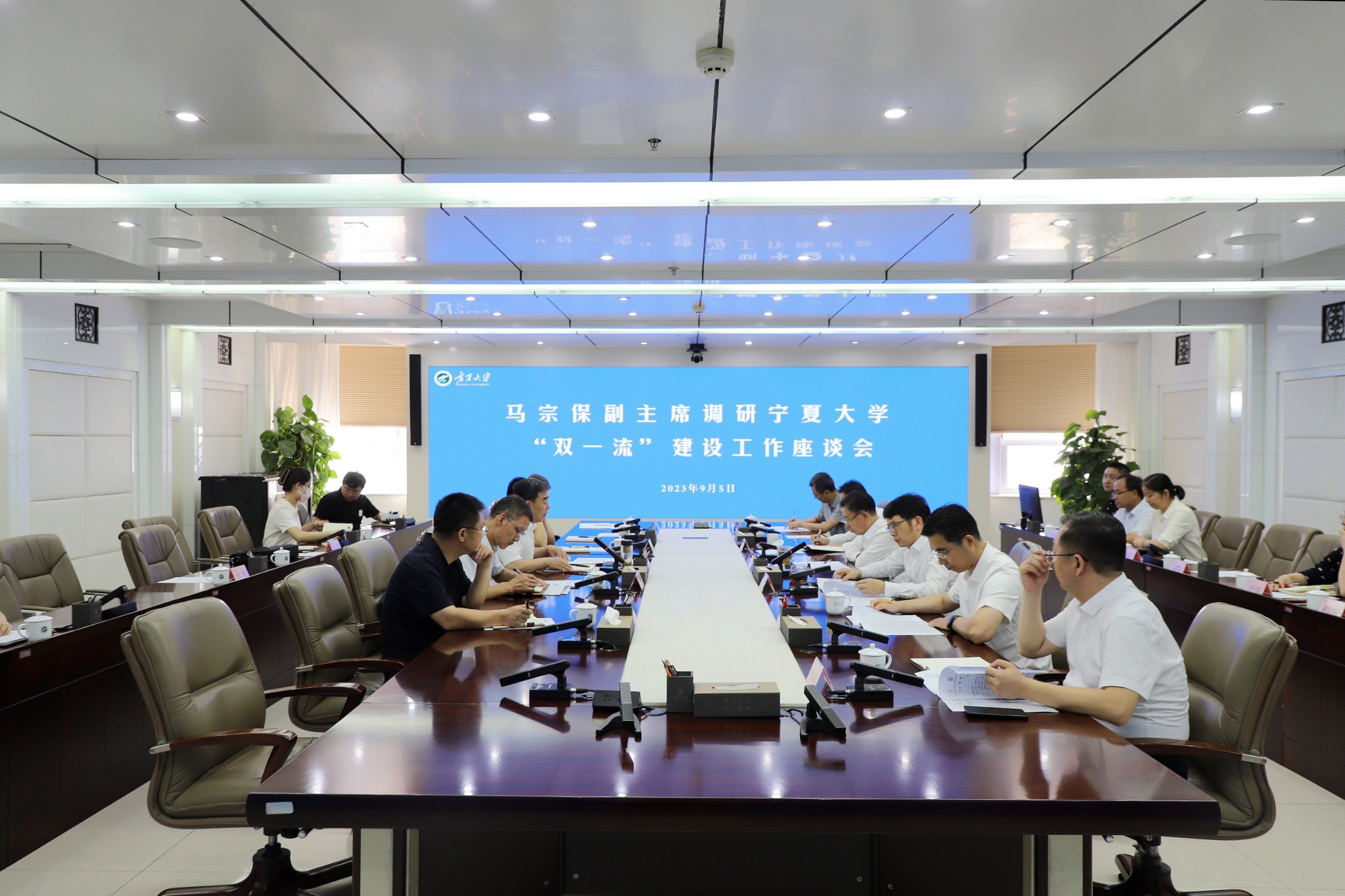 座谈会前,马宗保一行前往怀远校区兰竹苑餐厅调研食品安全、消防安全、燃气使用情况,在兰竹苑餐厅南侧调研了拟规划建设学生公寓和食堂情况。在朔方校区,马宗保一行调研了新农科人才培养与创新研究院建设、老旧楼宇改造、校园环境整治等情况,并在现场听取了相关工作的汇报。