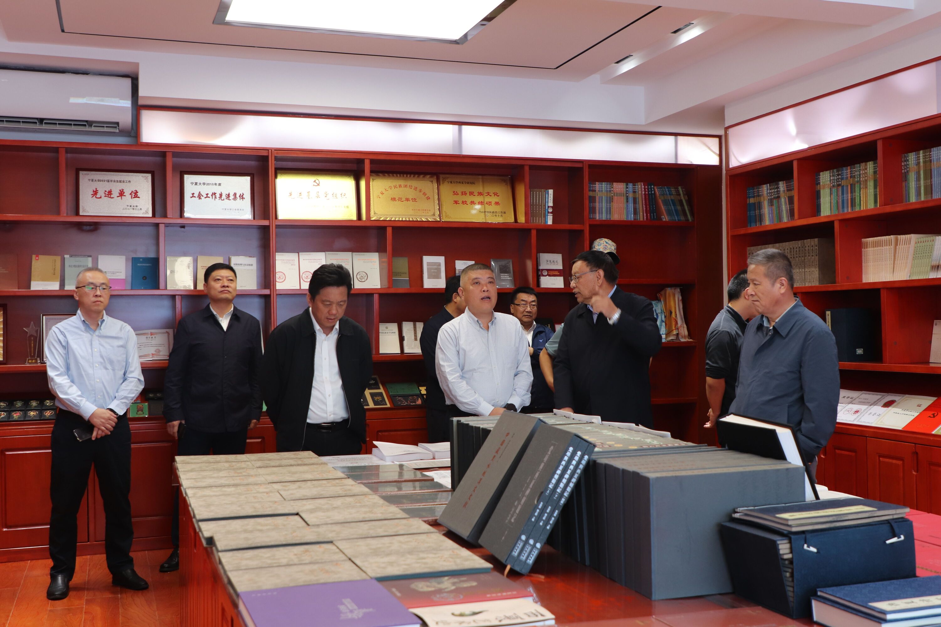 座谈会前,在自治区教育厅副厅长吴保军、二级巡视员翟家驹和副校长李学斌的陪同下,华东理工大学一行前往怀远校区实地调研了永利中华民族共同体研究院、西夏学研究院建设情况,在贺兰山校区科技楼调研了省部共建煤炭高效利用与绿色化工国家重点实验室、校企联合研发创新体建设情况,以及西北土地退化与生态恢复国家重点实验室培育基地建设及人才引育情况等。