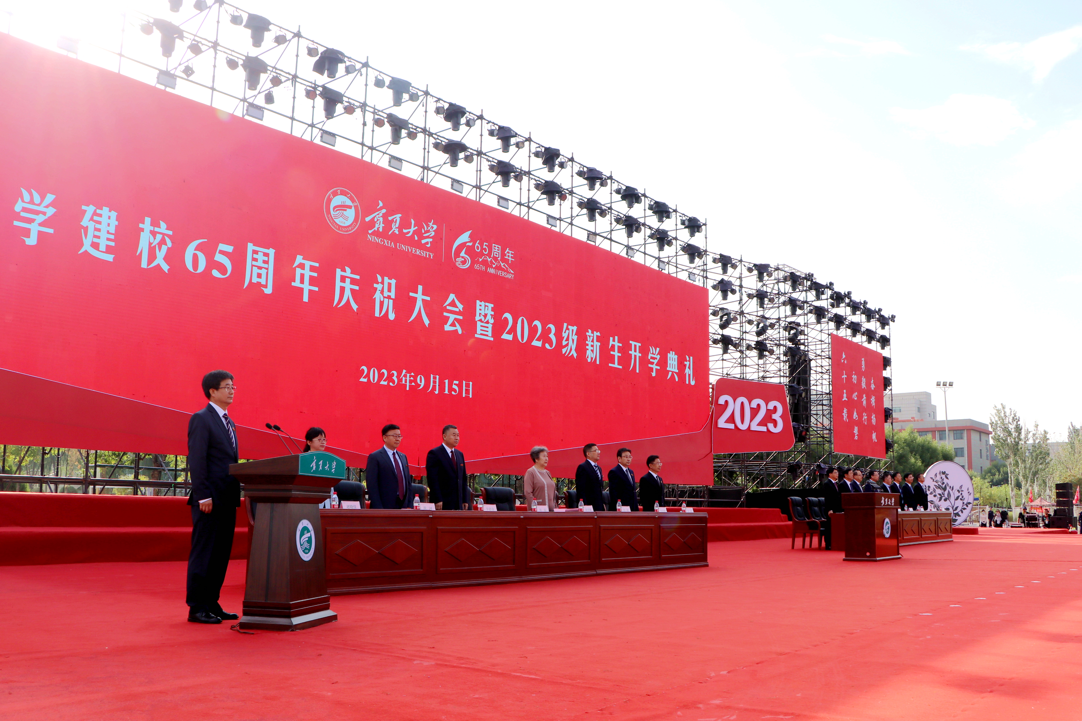 全体校领导,中国工程院院士马玉山,永利集团304官网原校长何建国,中国银行宁夏分行行长肖达,中国阿拉伯国家研究院院长李绍先,永利集团304官网优秀校友代表赵秀琳,永利集团304官网原党委副书记王玉炯,永利集团304官网原党委常委、副校长、永利集团304官网校友会会长谢应忠出席大会,校党委副书记周震主持庆祝大会暨开学典礼。