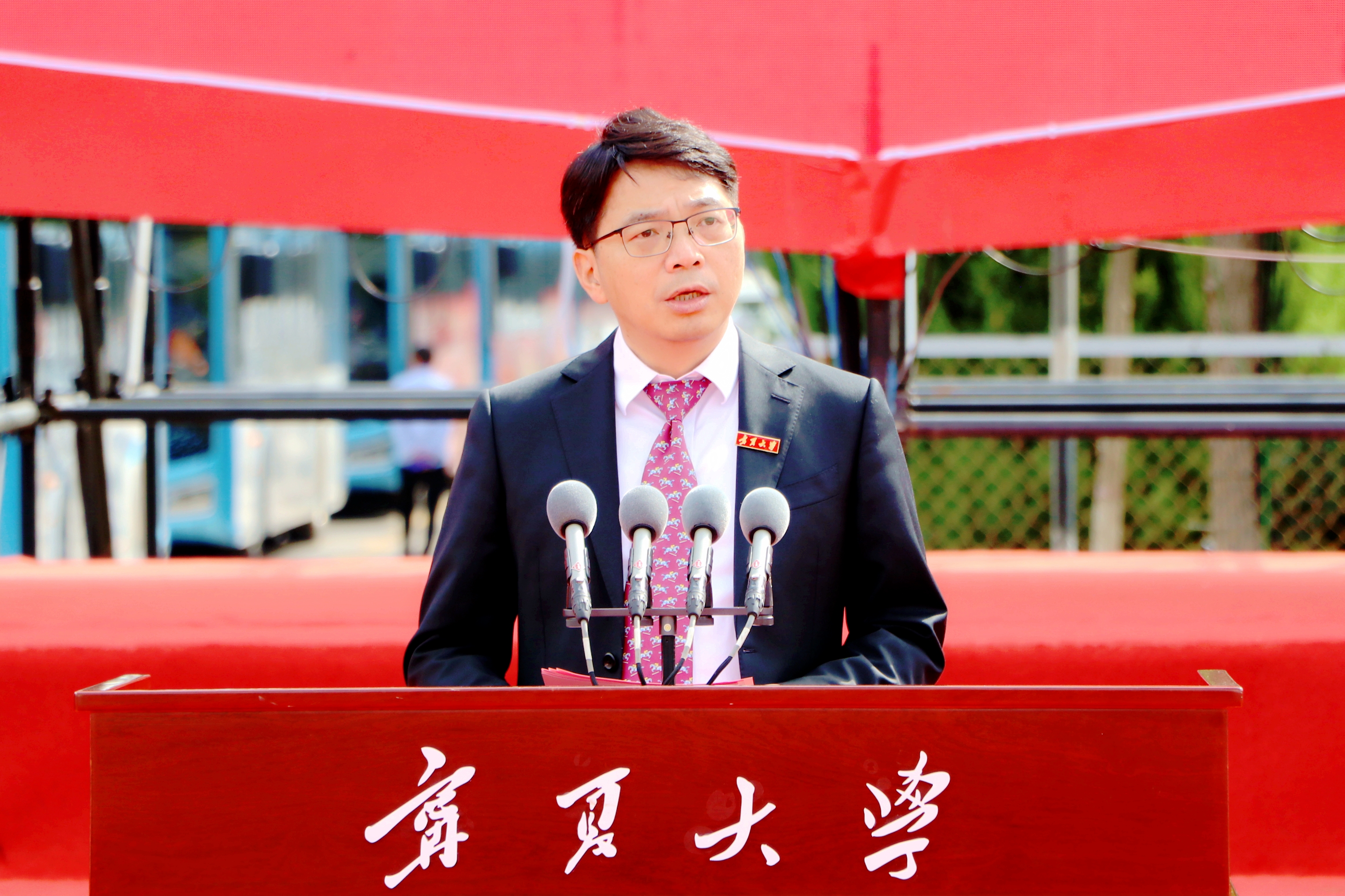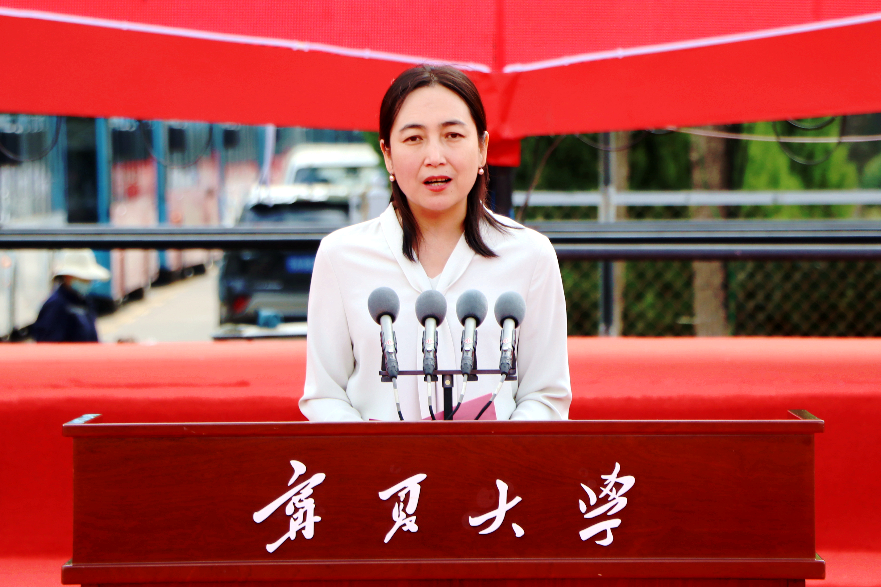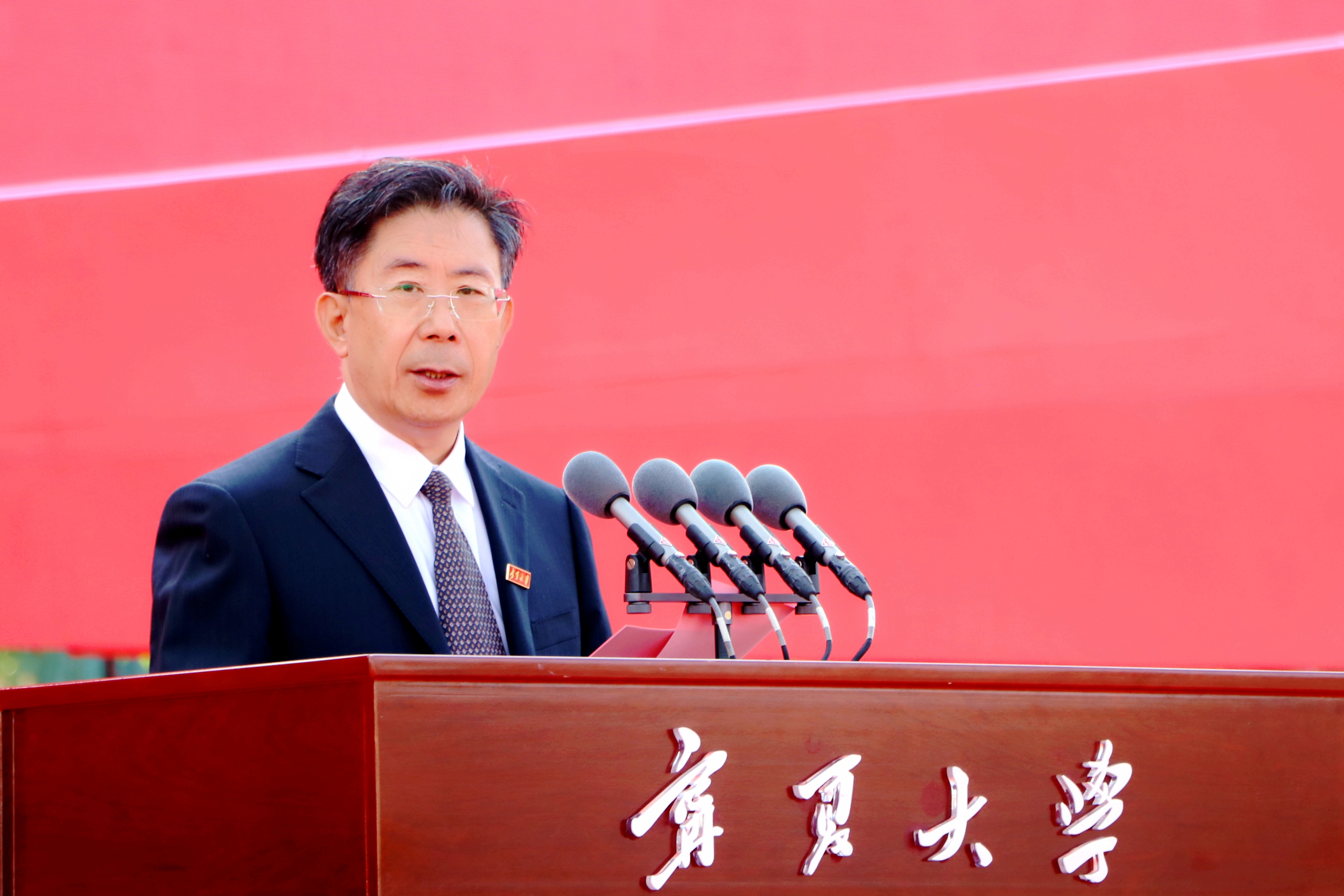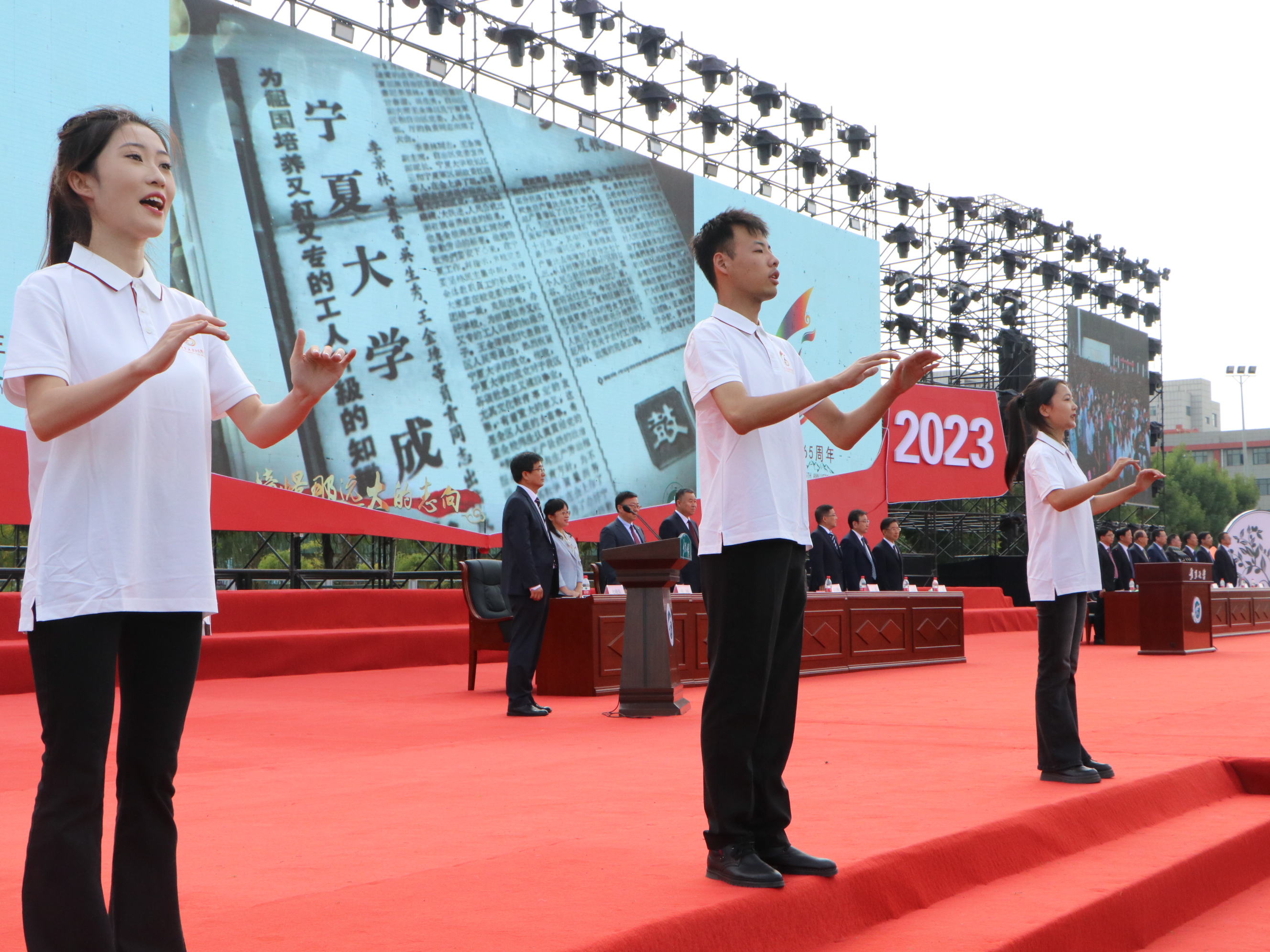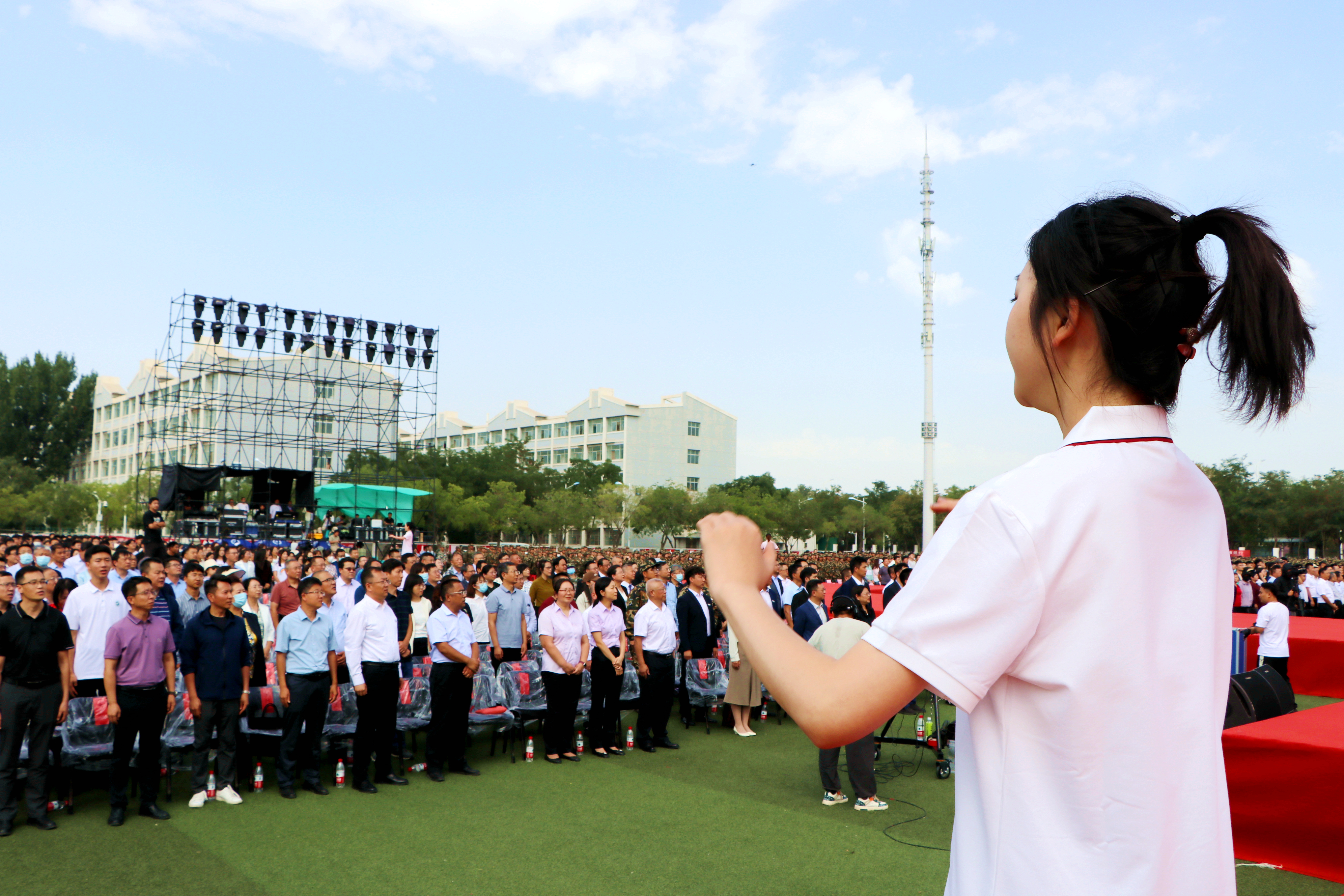 “......我们聚集在贺兰山下,为的是重振西部的辉煌。志存高远,脚踏实地,肩负起明天的希望。尚德勤学,求是创新,用青春谱写人生的华章......”开学典礼在激昂的校歌声中圆满落幕。